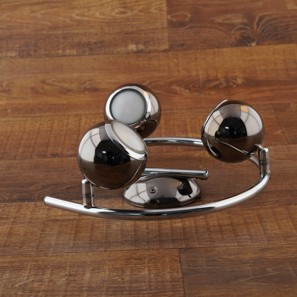 A LED spot lámpa 8,4 W teljesítménnyel működik, három GU10 foglalattal ellátva, amelyek mindegyikéhez melegfehér fényű fényforrás tartozik. A lámpatest acélból készült, fekete, nikkel és króm színkombinációban, így modern és funkcionális megjelenést biztosít. A 3000 K színhőmérsékletű LED modulok kellemes, meleg fényt bocsátanak ki, amelyek optimálisak lakásvilágítási célokra. A lámpa IP20 védettséggel rendelkezik, ezért beltéri használatra alkalmas. A termék méretei: hossza 290 mm, magassága 345 mm. A csomagolás mérete 12x26x30 cm, össztömege 0,65 kg. A lámpatest tartalmazza a szükséges fényforrásokat, így azonnal üzembe helyezhető. Gyártója az EGLO, logisztikai kódja 31007.