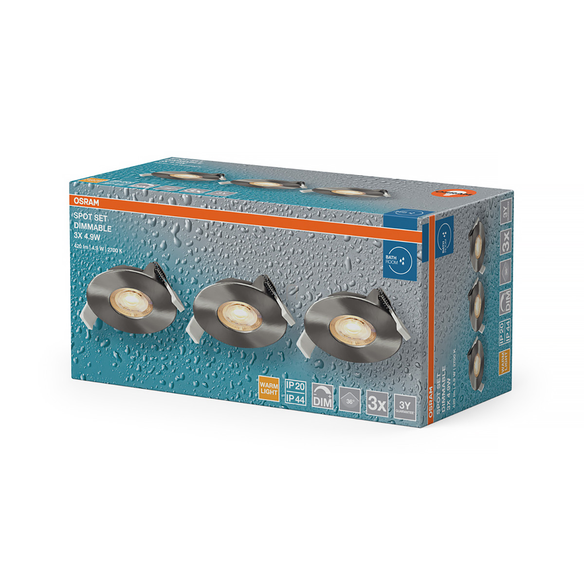 Osram LED spot Set Recess DIM IP44 süllyesztett LED spot lámpa, 4.9 W, 270 lm, 2700 K, szatinált nikkel