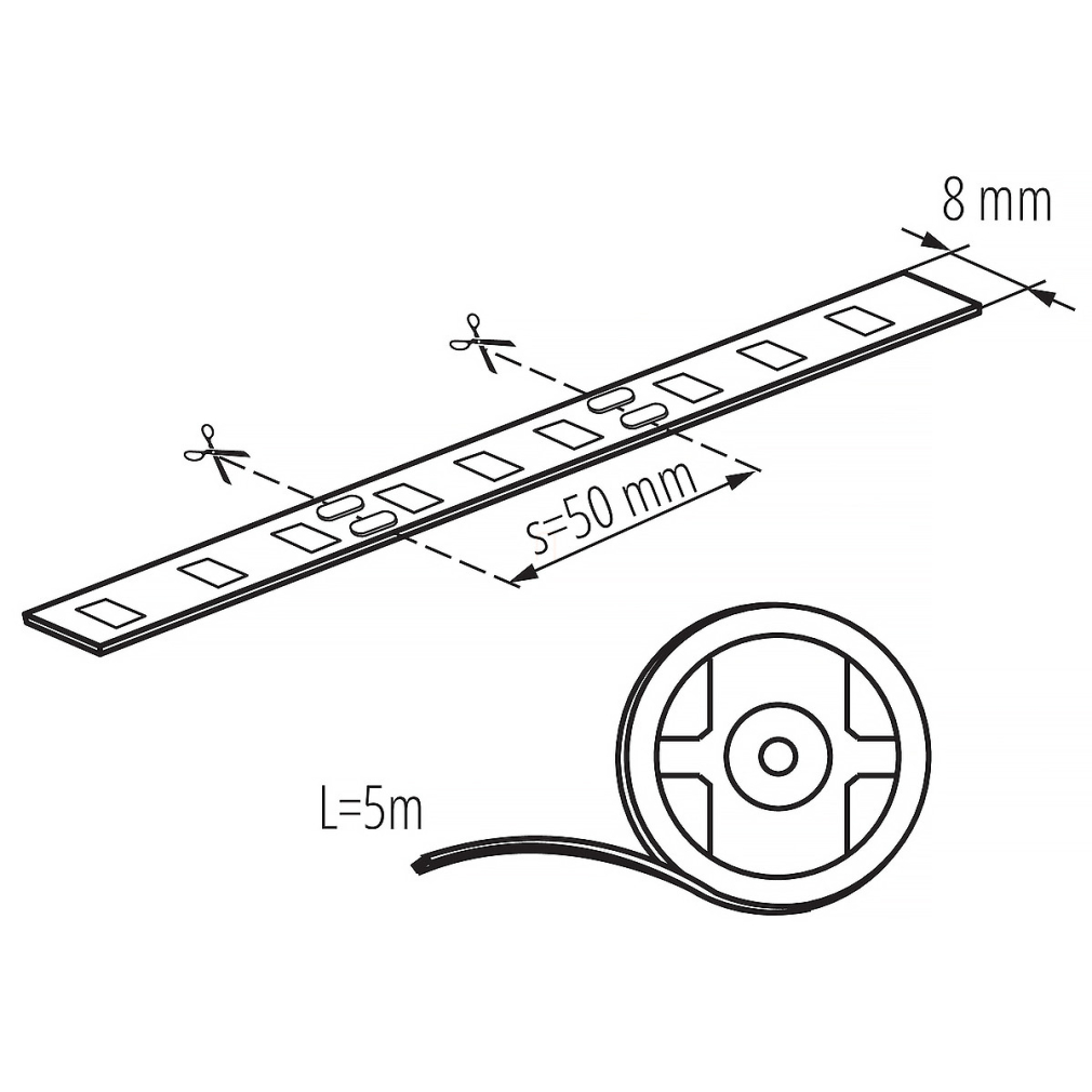 LED szalag, melegfehér, 12V, 4,8W/m, 450lm/m, 5 méter