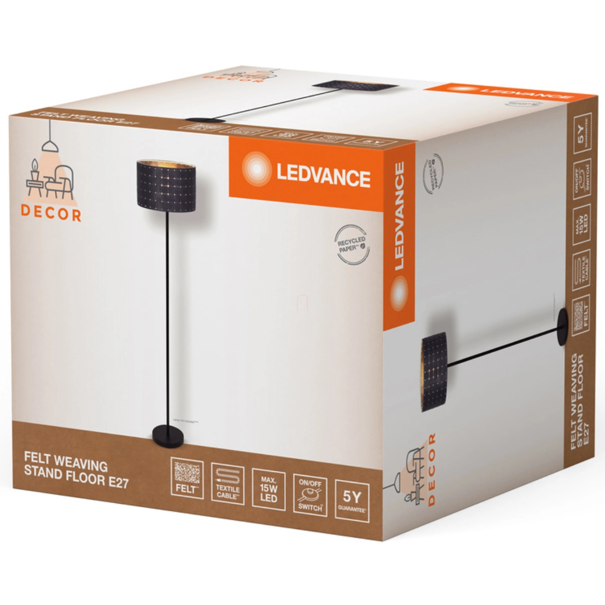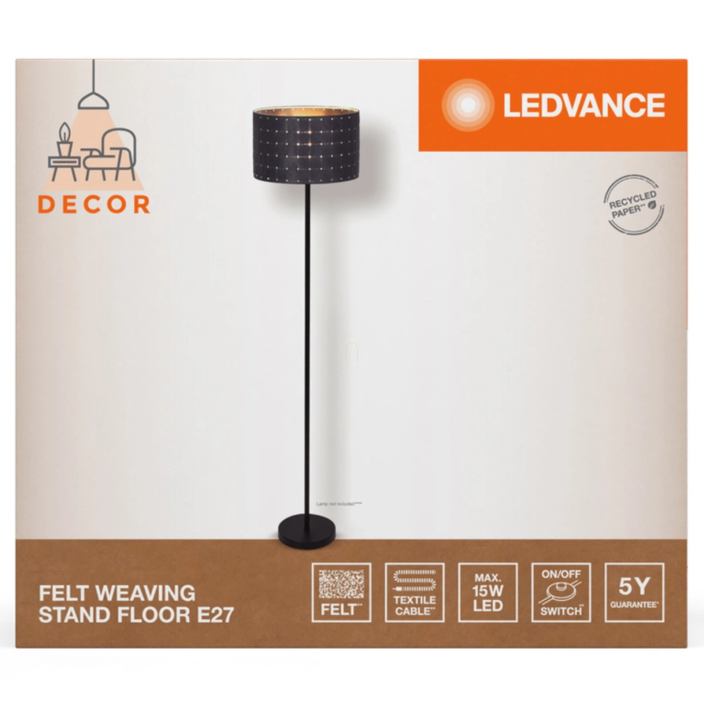 A Ledvance Decor Felt Weaving termékcsalád tökéletes választás folyosók, bejárati területek, lépcsőházak, nappali vagy akár pincék dekoratív megvilágításához. Az állólámpa inline kapcsolóval rendelkezik a kényelmes használathoz, valamint 1800 mm hosszúságú textil kábellel, amely nem csak praktikus, de esztétikai szempontból is illeszkedik a lámpa dizájnjához. A termék IP20 védettségi szinttel rendelkezik, ami beltéri használatra teszi alkalmassá, és -20°C és +40°C közötti környezeti hőmérsékleten használható. A tárolási hőmérséklet-tartomány -20°C és +80°C között van.