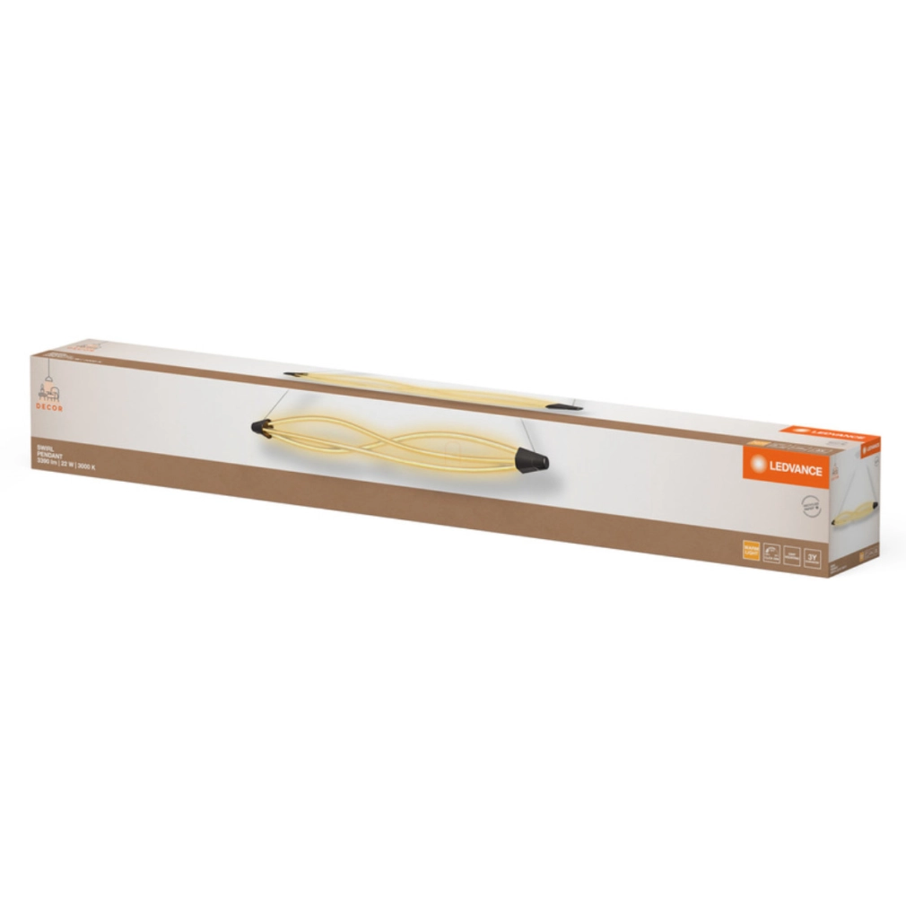 A Ledvance Decor Swirl Pendant 22W 830 Click DIM egy különleges megjelenésű, dekoratív függesztett LED lámpatest, amely a modern otthonok és közösségi terek kifinomult világítási megoldása lehet. Ez a hajlított polikarbonátból készült, ívelt formájú lámpatest egyedi filament-szerű megjelenésével azonnal a tér központi elemévé válik, miközben egyenletes, szemkímélő fényt biztosít.