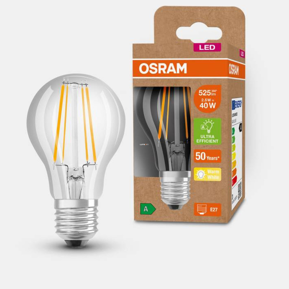 Osram E27 LED filament, 2,2 W, 470 lm, víztiszta búrával (Classic-A)