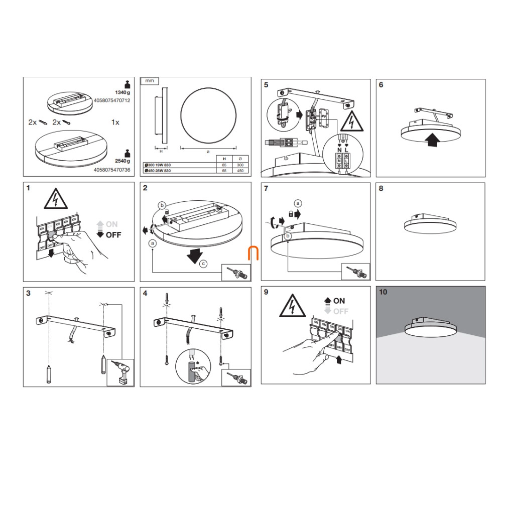 A Ledvance Planon Frameless Round kerek LED panel modern kialakítású, 45 cm átmérőjű világítótest, amely 28 W teljesítményű, integrált LED modullal működik. Fényárama 2700 lumen, melegfehér (3000 K) színhőmérséklettel, így kellemes, otthonos fényt biztosít. A panel sugárzási szöge 110 fok, ami egyenletes megvilágítást tesz lehetővé nagyobb helyiségekben is. A lámpatest fehér színű, alumíniumból és műanyagból készült, a védettségi besorolása IP20, így beltéri használatra alkalmas. Nem szabályozható, a névleges feszültsége 220-240 V. Az átlagos élettartama 25 000 óra, a termék tömege 2,86 kg, magassága 65 mm. A csomagolás méretei: 48x48x8 cm. A gyártó a Ledvance.