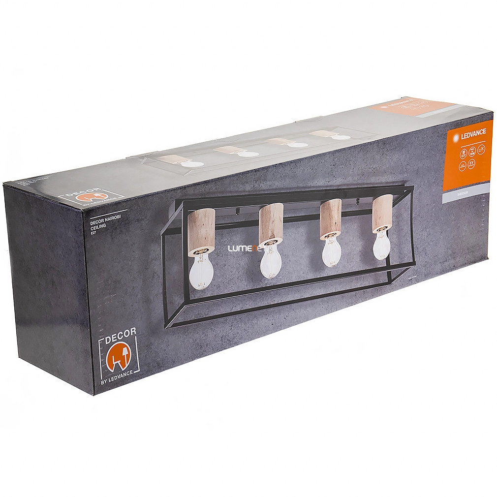 A Ledvance Decor Nairobi keretes mennyezeti lámpa modern, letisztult megjelenésével és fekete színével illeszkedik a korszerű enteriőrökbe. A lámpatest acélból készült, ami tartósságot és stabilitást biztosít. Négy darab E27 foglalattal rendelkezik, így cserélhető fényforrásokkal használható, amelyek nem tartozékai a terméknek. A lámpa 750 mm hosszú, 170 mm széles és 227 mm magas, így nagyobb helyiségek megvilágítására is alkalmas. IP20-as védettsége beltéri felhasználásra teszi alkalmassá. A termék tömege 1,65 kg, csomagolási méretei pedig 80 mm széles, 22 mm hosszú és 27 mm magas. A gyártó a Ledvance.