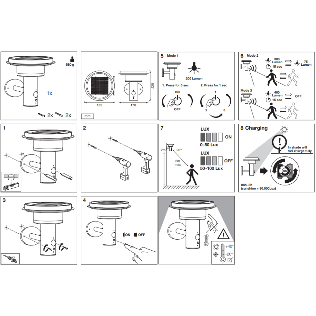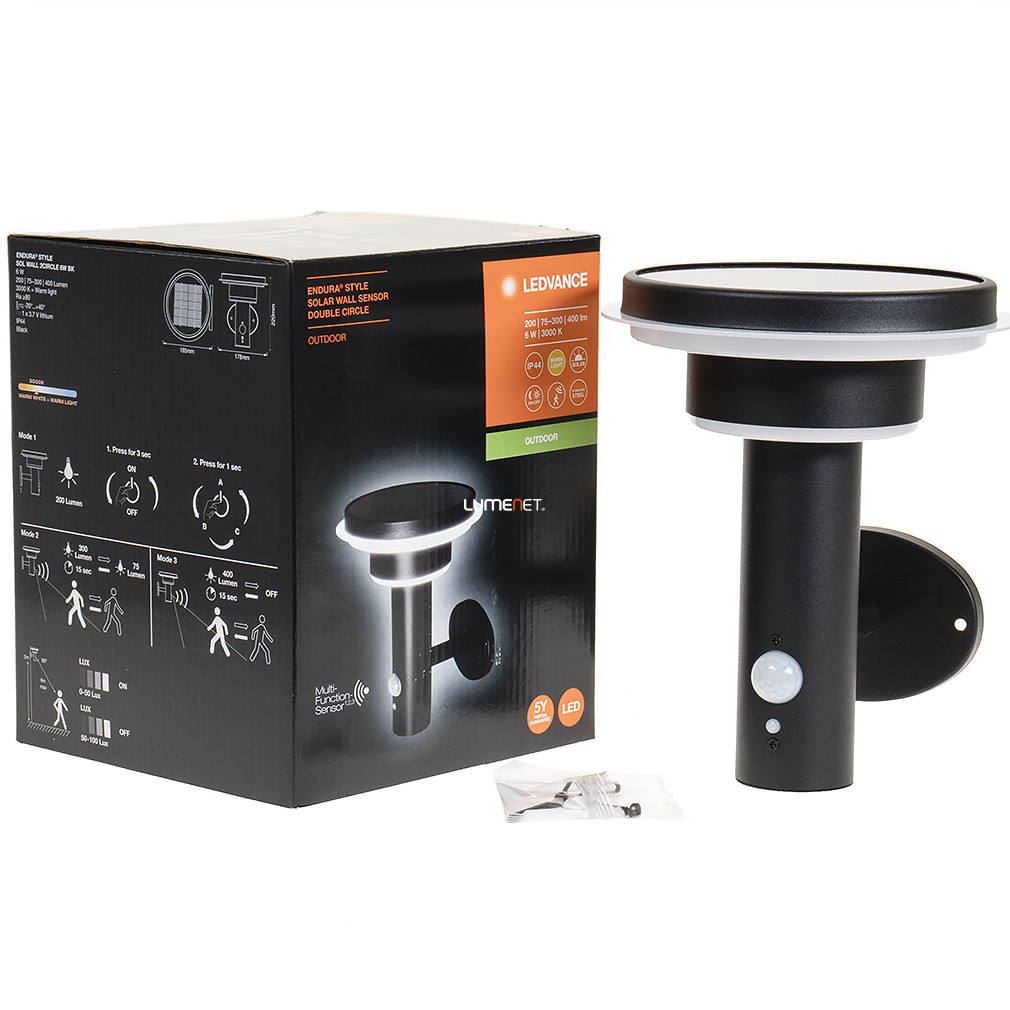 Ledvance kültéri napelemes LED falikar mozgásérzékelővel, melegfehér, 6 W (Endura Style Solar)