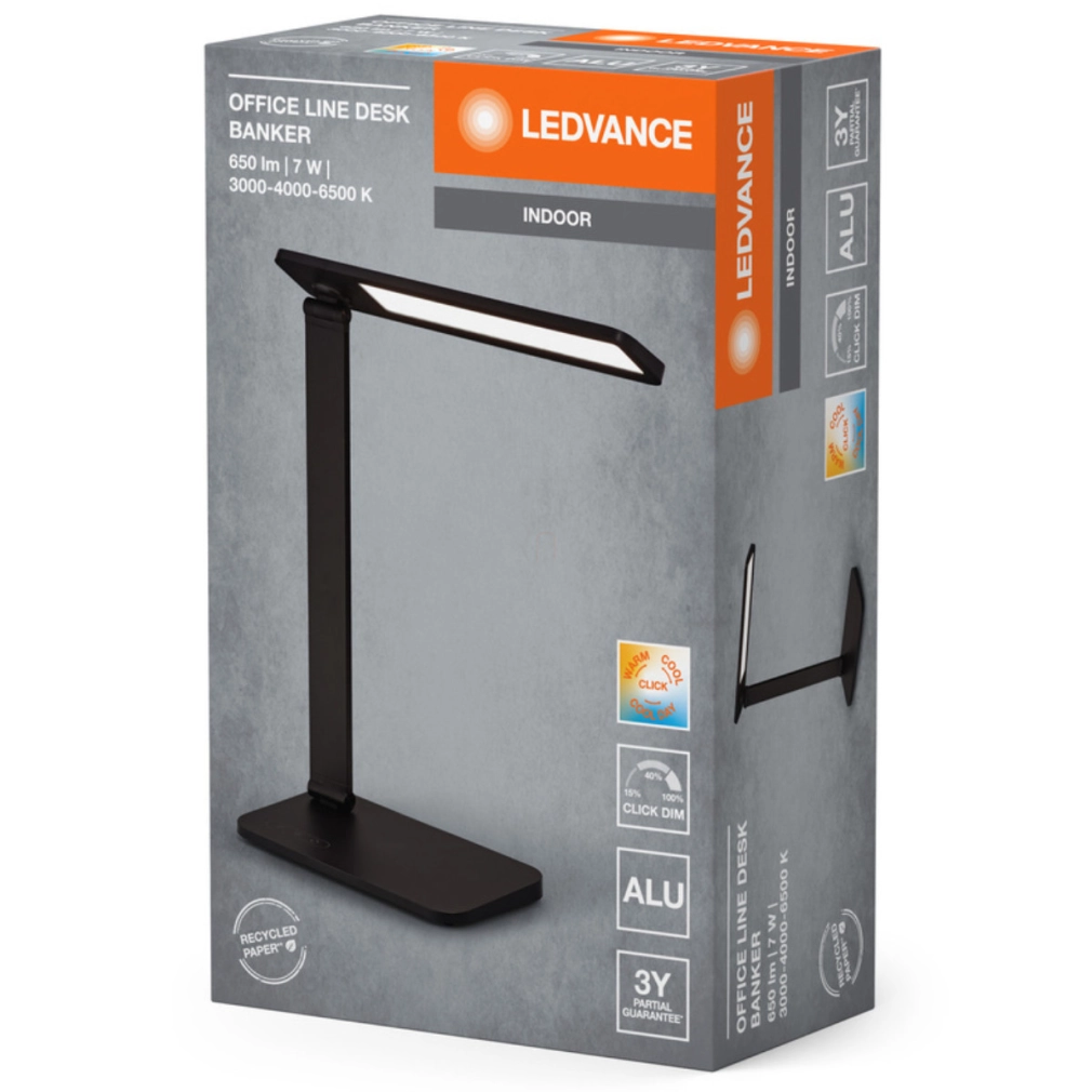 A Ledvance Office Line Desk Banker 7W CCT Dimmable Black asztali lámpa kiváló választás mindazoknak, akik modern, sokoldalú megvilágítási megoldást keresnek az otthoni vagy irodai környezetbe. Ez a fekete színű, alumínium házas lámpa elegáns megjelenésével és időtlen dizájnjával tökéletesen illeszkedik bármilyen belső térbe, legyen szó nappaliról, dolgozószobáról vagy otthoni irodáról.