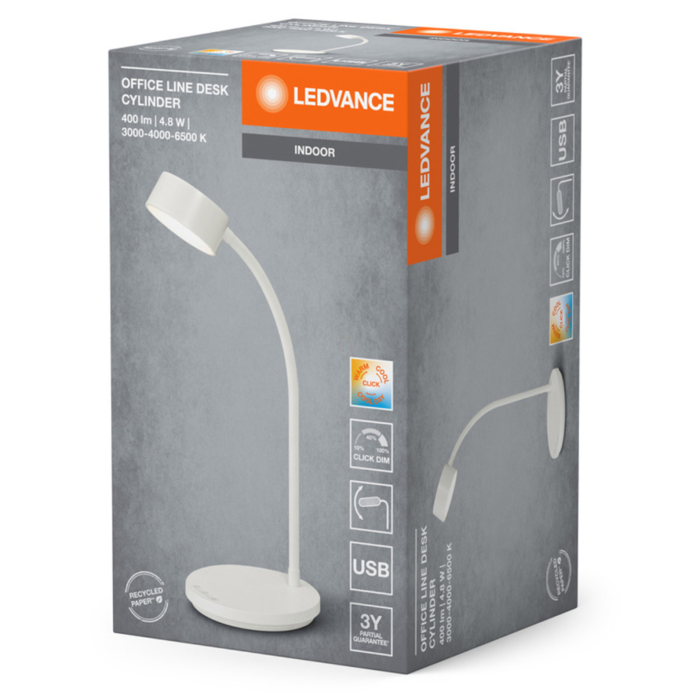 A Ledvance Office Line Desk Cylinder 4.8W CCT Dimmable White asztali lámpa a modern munkaterek és otthoni irodák tökéletes kiegészítője. Ez a sokoldalú világítási megoldás nem csupán praktikus, de esztétikus megjelenésével is hozzájárul a munkakörnyezet kellemes hangulatához. A fehér színben elérhető, elegáns hengerfejű lámpa ideális választás asztalokra, íróasztalokra és otthoni irodákba egyaránt.
