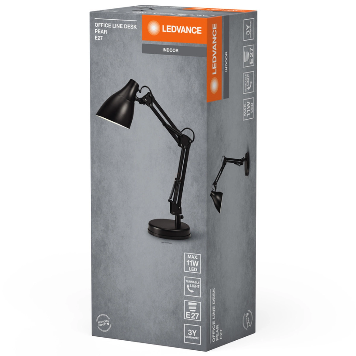 Az Office Line Desk Pear E27 Black asztali lámpa a Ledvance minőségi kínálatának klasszikus darabja, amely tökéletes választás irodai munkakörnyezetbe, otthoni irodákba vagy akár a nappali világításához is. Ez a fekete színű, elegáns megjelenésű asztali lámpa innovatív megoldást kínál a felhasználók számára, hiszen az E27-es foglalatnak köszönhetően szabadon választhatod meg a fényforrást az igényeidnek megfelelően.