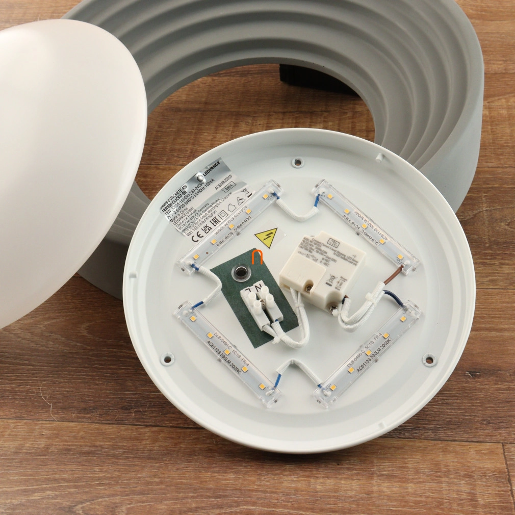 A Ledvance Orbis Concrete mennyezeti LED lámpa egy modern, 40 cm átmérőjű világítótest, amely beton és műanyag anyagok felhasználásával készült. A lámpatest beépített 18 W-os LED modullal rendelkezik, amely 1500 lumen fényáramot biztosít melegfehér, 3000 K színhőmérsékleten. A sugárzási szög 116°, a színvisszaadási index (CRI) 80, így a fény természetes hatású. A lámpa dimmelhető, falikapcsolóval szabályozható, és IP20 védettséggel rendelkezik, amely beltéri, elsősorban fürdőszobai használatra teszi alkalmassá. Az átlagos élettartam eléri a 30 000 órát. A termék szürke színű, 100 mm magasságú, és a csomagolás méretei 45x14x45 cm. Névleges feszültsége 220-240 V, a fényforrás a csomag részét képezi.
