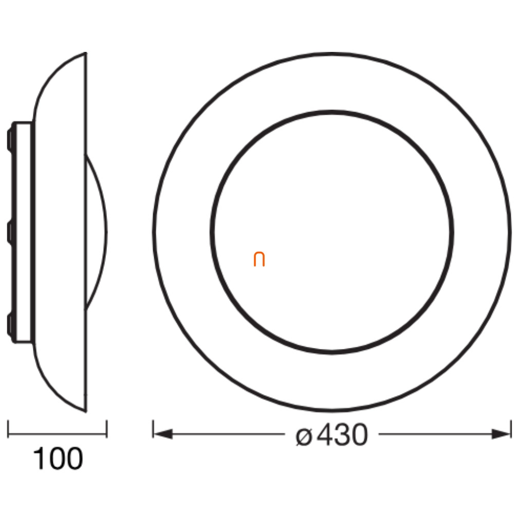 A lámpatest 43 cm átmérőjű, 10 cm magasságú, és 1,385 kg tömegű. 35 wattos beépített LED modullal rendelkezik, amely 1700 lumen fényáramot biztosít, melegfehér (3000 K) színhőmérséklettel. A termék 120°-os sugárzási szöget kínál, színvisszaadási indexe CRI 80. A lámpa dimmelhető, falikapcsolóval szabályozható, névleges feszültsége 220-240 V. Anyaga acél és műanyag, színe fekete és kék. Az IP20 védettségi szint beltéri használatra teszi alkalmassá. Átlagos élettartama 30 000 óra, a fényforrás beépített LED modul. A csomagolás méretei: 51x51x18 cm. A gyártó a Ledvance.