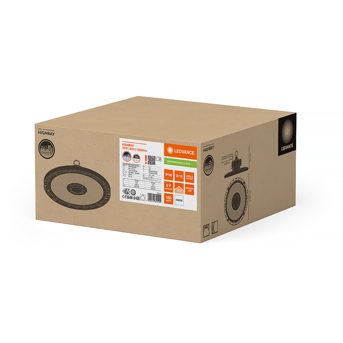 Ledvance professzionális High Bay Gen 5 High Bay szabályozható, 13500 lm/9540 lm, 4000 K, 75W, RA≥80, 110 °, IP66
