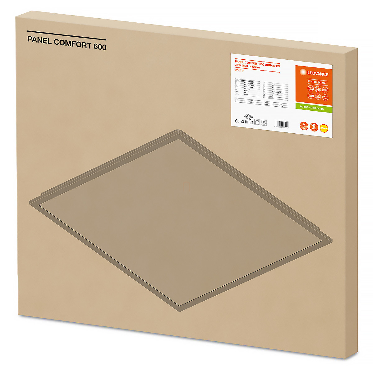 Ledvance professzionális Panel Comfort 600 UGR<19 PS süllyeszthető vagy függeszthető szabályozható LED panel, 4320 lm/3900 lm/3640 lm, 3000 K, 33W, RA> 80, 90 °, IP40/IP20, 595mm