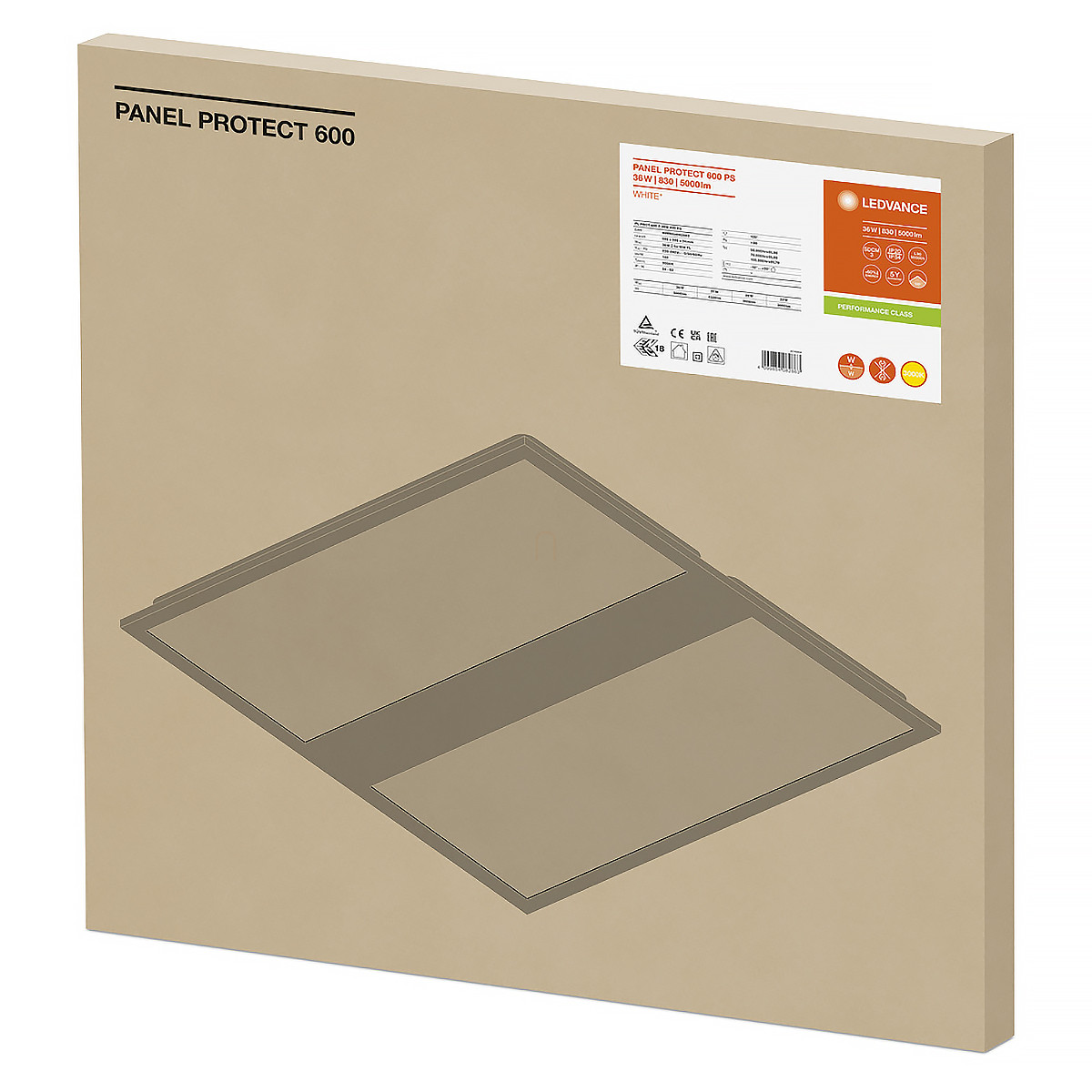 Ledvance professzionális Panel Protect 600 PS süllyeszthető vagy függeszthető szabályozható LED panel, 5040 lm/4340 lm/3640 lm/3080 lm, 4000 K, 36W, RA> 80, 120 °, IP54/IP20, 595mm