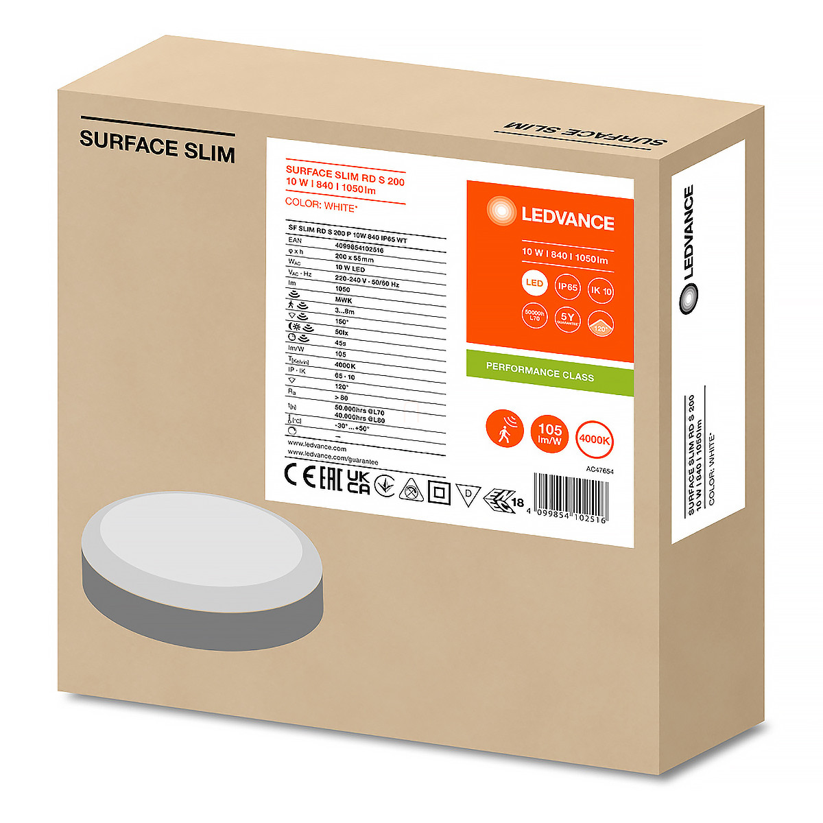 Ledvance professzionális Surface Slim IK10 RD 200 Sensor LED lámpa, 1050 lm, 4000 K, 10W, RA> 80, 120 °, IP65