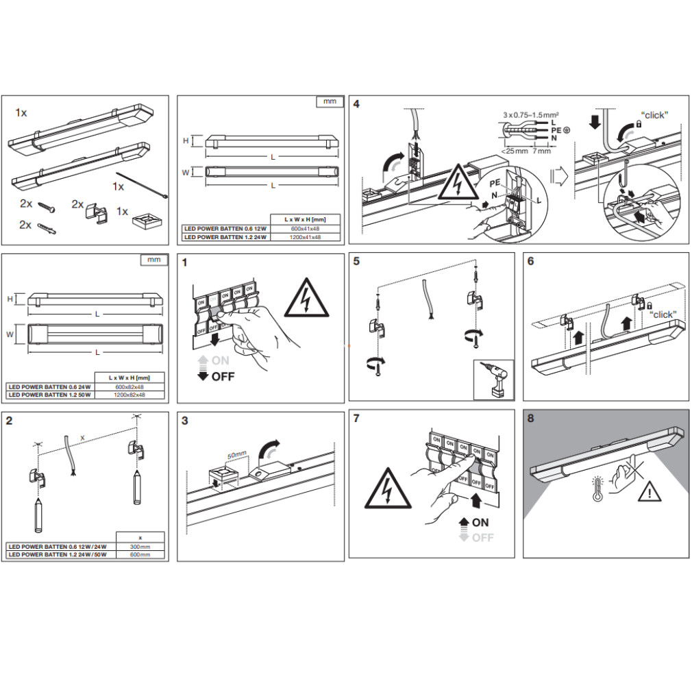 A Ledvance pultvilágító LED lámpa 120 cm hosszúságban, 50 W teljesítménnyel és 4800 lumen fényárammal biztosítja a melegfehér (3000 K) világítást. A lámpatest beépített LED modullal rendelkezik, amelynek átlagos élettartama 25 000 óra. Az IP20 védettségi szintű eszköz fehér színű, műanyag és acél anyagokból készült, nem szabályozható fényerővel. A termék tömege 1,22 kg, méretei 1200 mm hossz, 82 mm szélesség és 48 mm magasság. A csomagolás méretei: 9 cm szélesség, 5 cm hosszúság, 122 cm magasság. A Ledvance által gyártott pultvilágító lámpa ideális bútorok és pultfelületek megvilágítására, modern és hatékony LED technológiával.