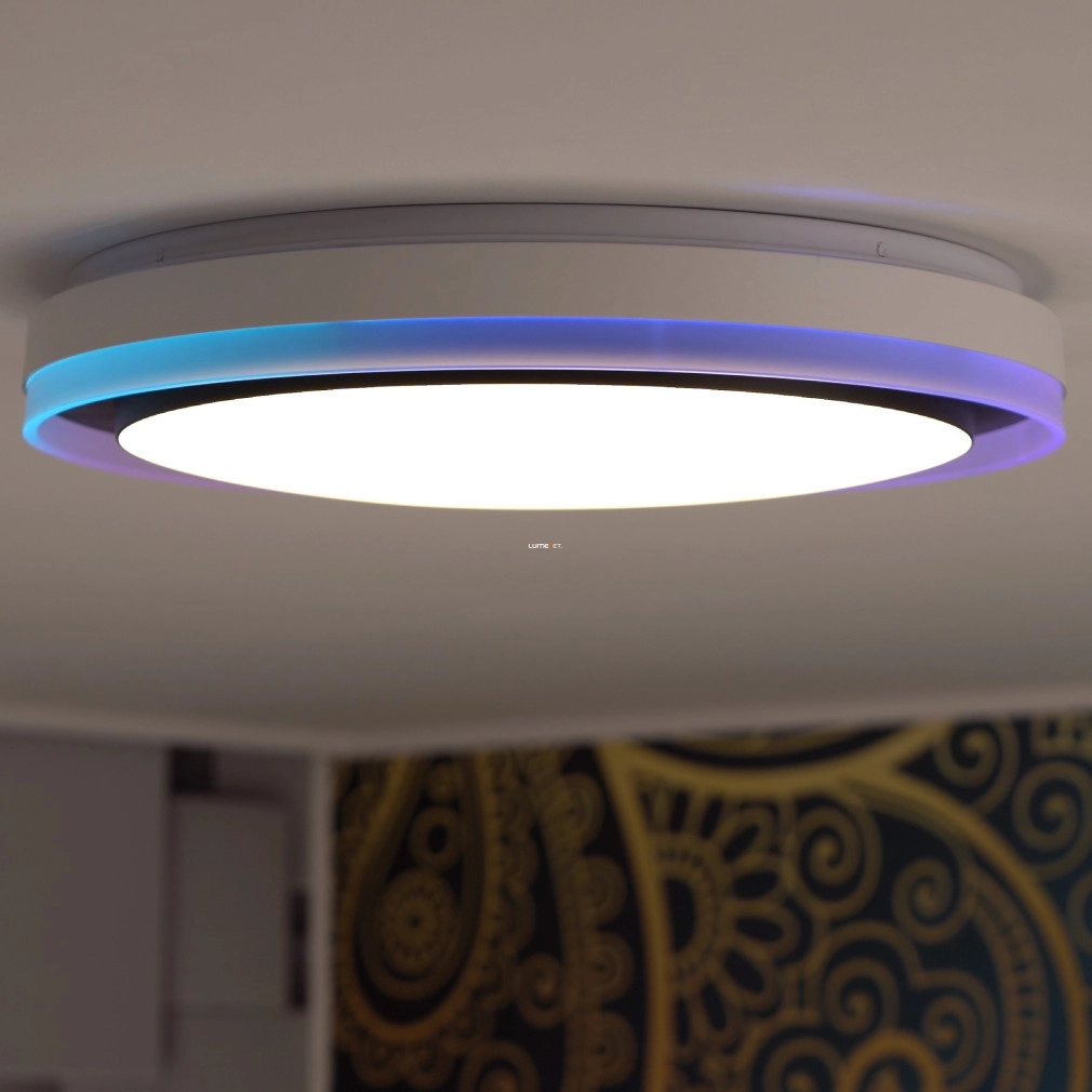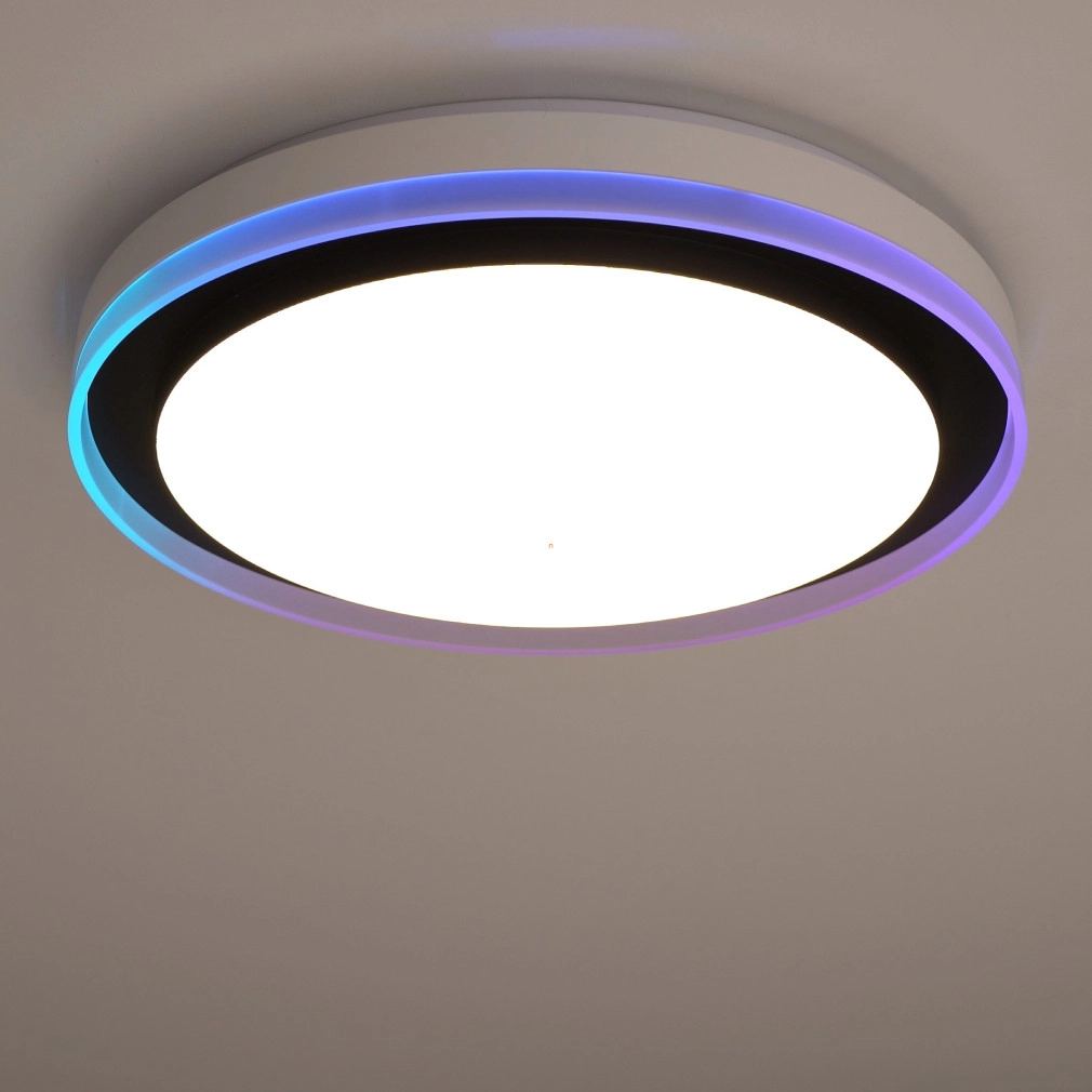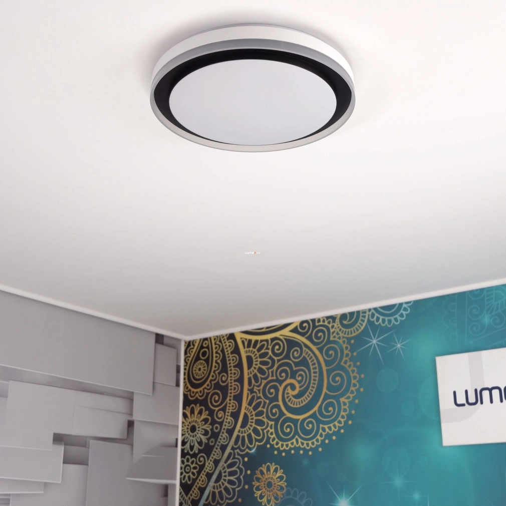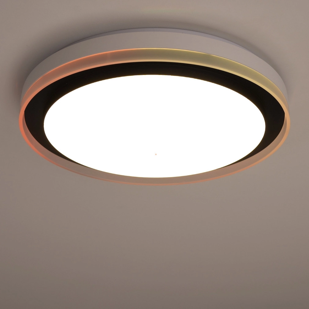 A Ledvance Smart+ WIFI okos mennyezeti LED lámpa (Orbis Magic) korszerű világítástechnikai megoldást kínál lakótérbe integrálható, fekete színű, 490 mm átmérőjű kialakításával. A 38 wattos teljesítményű LED modul 1050 lumen fényáramot biztosít, amely 2700 és 6500 Kelvin közötti színhőmérséklet-tartományban szabályozható, akár hideg, akár melegfehér fényre, valamint RGBW színbeállításokra is képes. A lámpatest Wi-Fi kapcsolaton keresztül, alkalmazással vagy opcionális távirányítóval vezérelhető, lehetővé téve a fényerő és színhőmérséklet pontos beállítását. A 120 fokos sugárzási szög és a 80-as színvisszaadási index egyenletes, természetes megvilágítást garantál. Az acél és műanyag kombinációjú ház IP20 védettséggel rendelkezik, így beltéri használatra alkalmas. A LED modul beépített, az átlagos élettartam eléri az 50 000 órát. A termék 220-240 V névleges feszültségről üzemeltethető, fényhasznosítása 33 lm/W. A csomagolás méretei: 51x51x10 cm, tömege 2,4 kg.