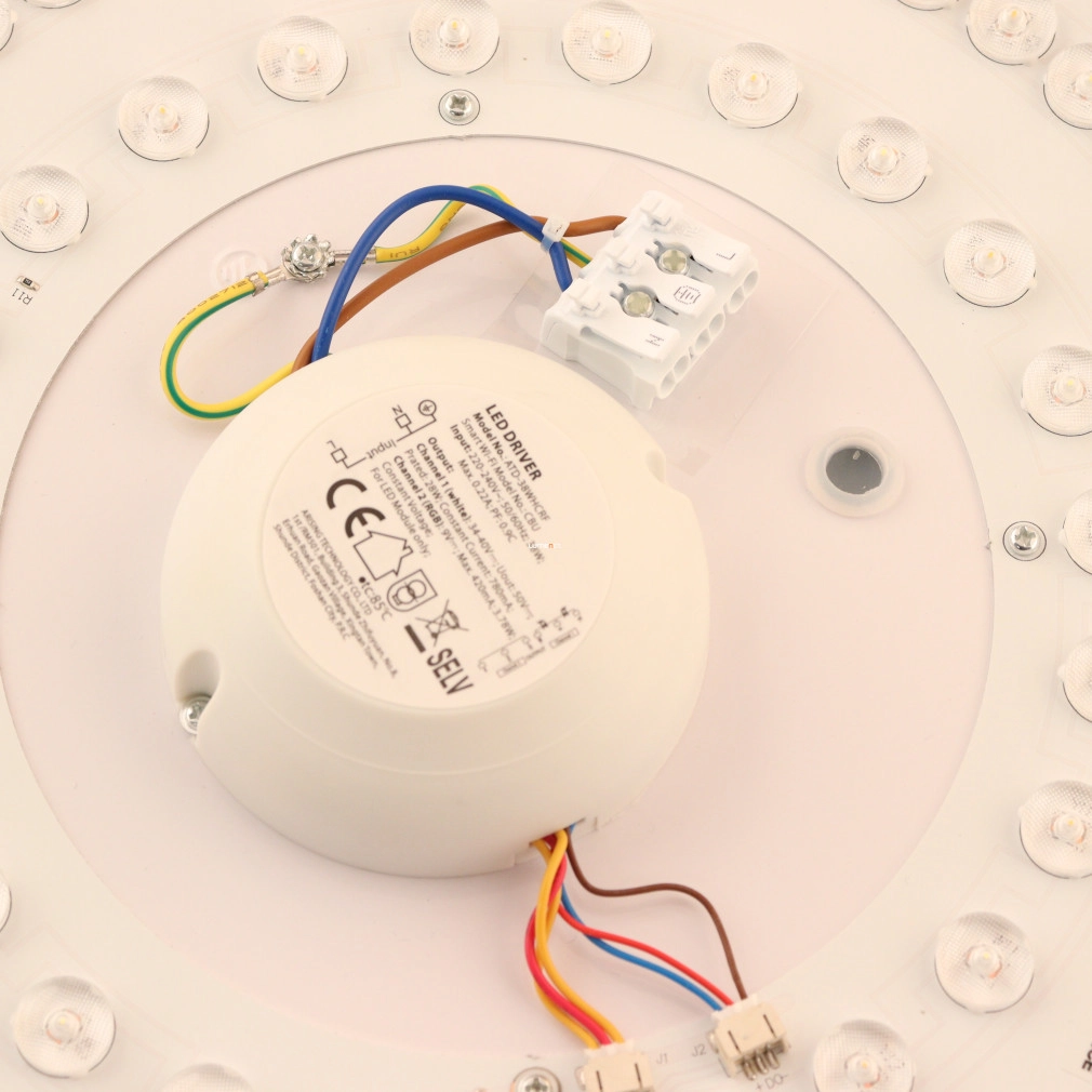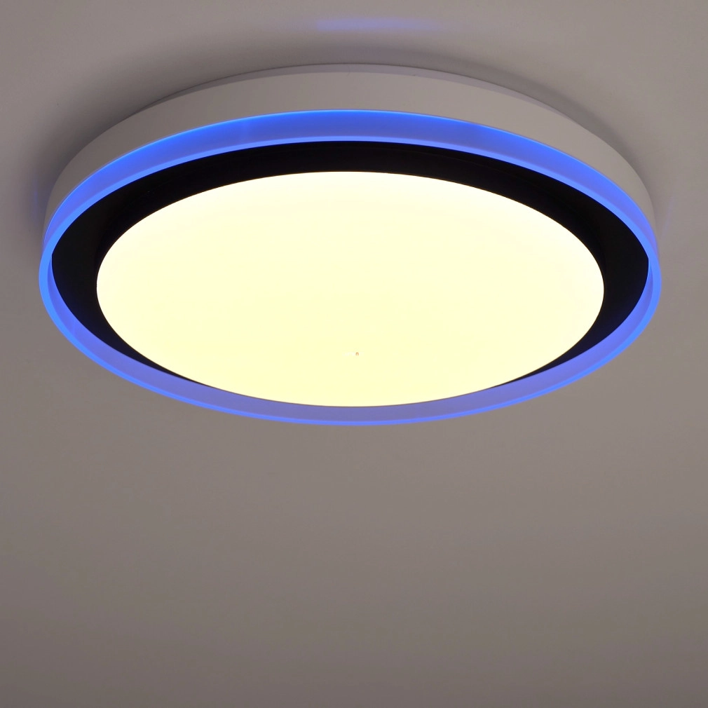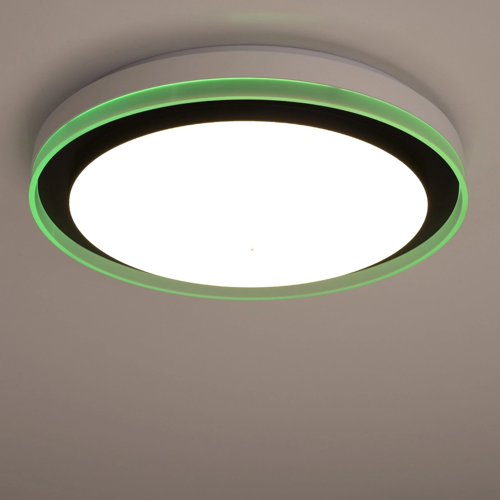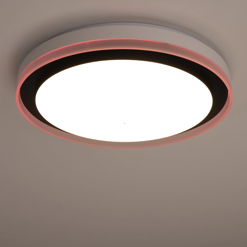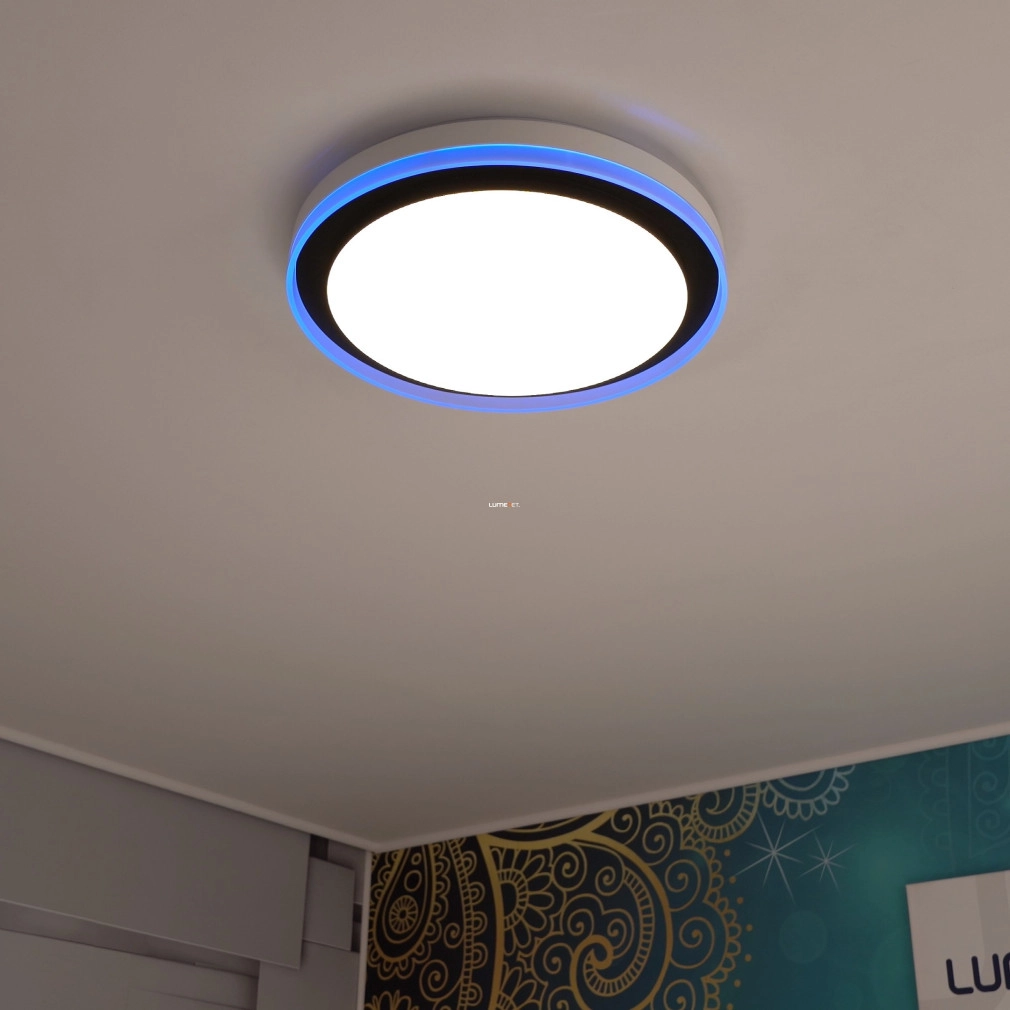 A Ledvance Smart+ WIFI okos mennyezeti LED lámpa (Orbis Magic) korszerű világítástechnikai megoldást kínál lakótérbe integrálható, fekete színű, 490 mm átmérőjű kialakításával. A 38 wattos teljesítményű LED modul 1050 lumen fényáramot biztosít, amely 2700 és 6500 Kelvin közötti színhőmérséklet-tartományban szabályozható, akár hideg, akár melegfehér fényre, valamint RGBW színbeállításokra is képes. A lámpatest Wi-Fi kapcsolaton keresztül, alkalmazással vagy opcionális távirányítóval vezérelhető, lehetővé téve a fényerő és színhőmérséklet pontos beállítását. A 120 fokos sugárzási szög és a 80-as színvisszaadási index egyenletes, természetes megvilágítást garantál. Az acél és műanyag kombinációjú ház IP20 védettséggel rendelkezik, így beltéri használatra alkalmas. A LED modul beépített, az átlagos élettartam eléri az 50 000 órát. A termék 220-240 V névleges feszültségről üzemeltethető, fényhasznosítása 33 lm/W. A csomagolás méretei: 51x51x10 cm, tömege 2,4 kg.