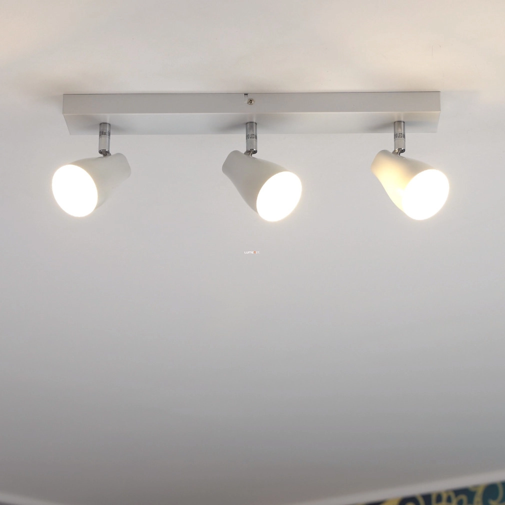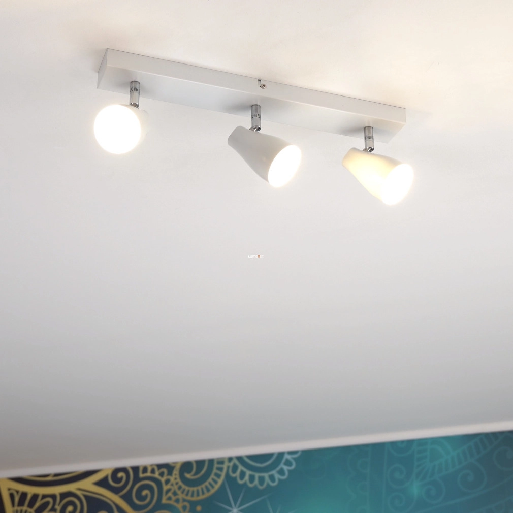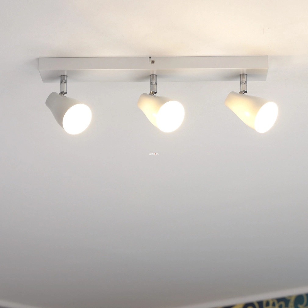 A Ledvance spot lámpa fényforrással, három karos kivitelben, mennyezetre szerelhető megoldást kínál modern lakásvilágítási igényekhez. Fehér színű, Pearl elnevezésű lámpatestje műanyag és fém anyagból készült, három darab GU10 foglalattal rendelkezik, melyekhez a fényforrásokat a csomag tartalmazza. A 12,9 watt teljesítményű LED modul 630 lumen fényáramot biztosít, melegfehér, 2700 Kelvin színhőmérséklettel, amely kellemes, otthonos hangulatot teremt. A lámpa 220-240 V névleges feszültségről működik, sugárzási szöge 36 fok, színvisszaadási indexe CRI 80, fényhasznosítása 48 lm/W. A termék IP20 védettségi szinttel és IK06 ütésállósággal rendelkezik, átlagos élettartama eléri a 30 000 órát. A lámpa méretei: hosszúság 444 mm, szélesség 60 mm, magasság 131 mm. A lámpatest nem szabályozható, így fix fényerővel üzemel. A Ledvance spot lámpa logisztikai kódja: 4058075826458.