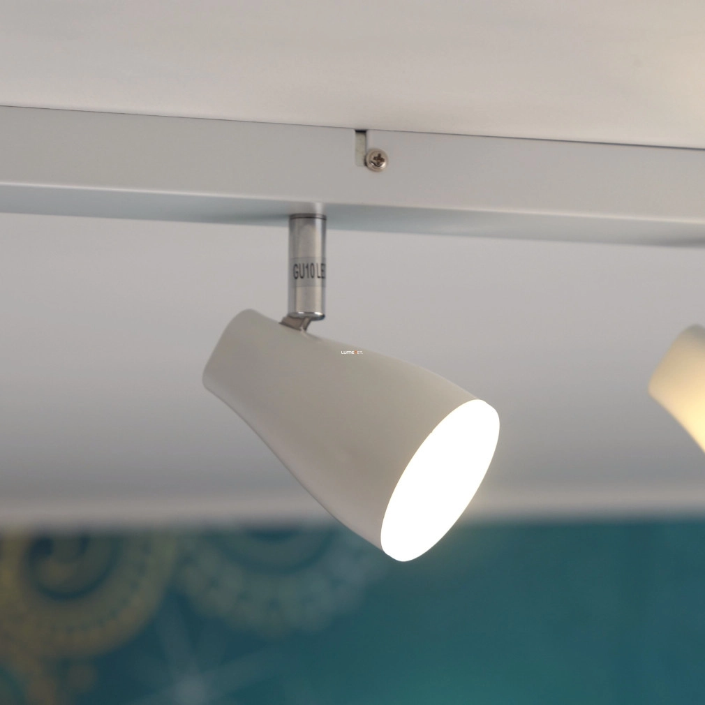 A Ledvance spot lámpa fényforrással, négy karos kivitelben, mennyezetre szerelhető megoldásként biztosítja a hatékony lakásvilágítást. A lámpatest fehér színű, modern megjelenésű, anyaga műanyag és fém kombinációja. A 4 db GU10 foglalatba szerelt melegfehér fényforrások összesen 840 lumen fényáramot biztosítanak, 2700 K színhőmérséklettel, ami kellemes, otthonos fényt eredményez. A teljesítmény 17,2 watt, a lámpa nem szabályozható, névleges feszültsége 220-240 V. A sugárzási szög 36 fok, a színvisszaadási index (CRI) 80, amely valósághű színmegjelenítést garantál. A lámpatest IP20 védettséggel és IK06 ütésállósággal rendelkezik. Átlagos élettartama 30 000 óra, így hosszú távon megbízható fényforrásként szolgál. A lámpa méretei: 614 mm hosszú, 60 mm széles, 131 mm magas. A csomag tartalmazza a fényforrásokat, így azonnal használatra kész.