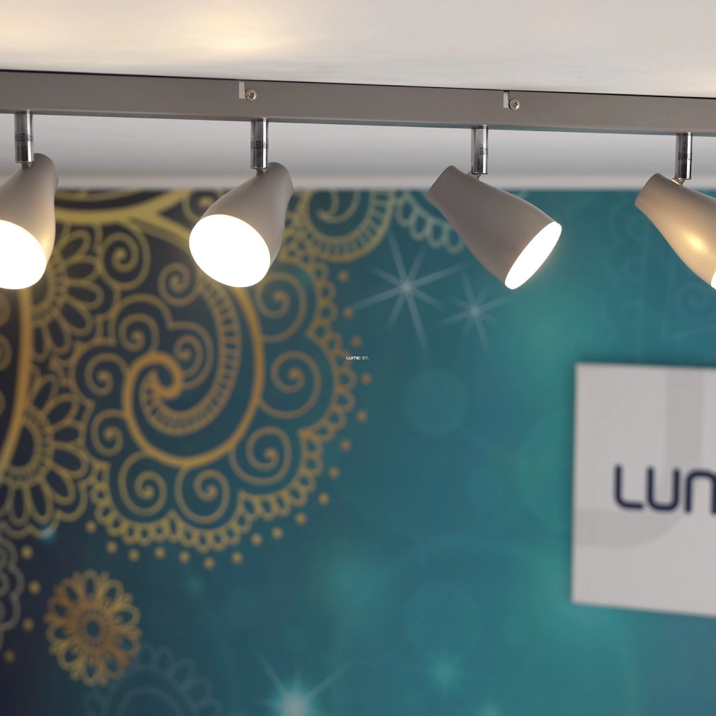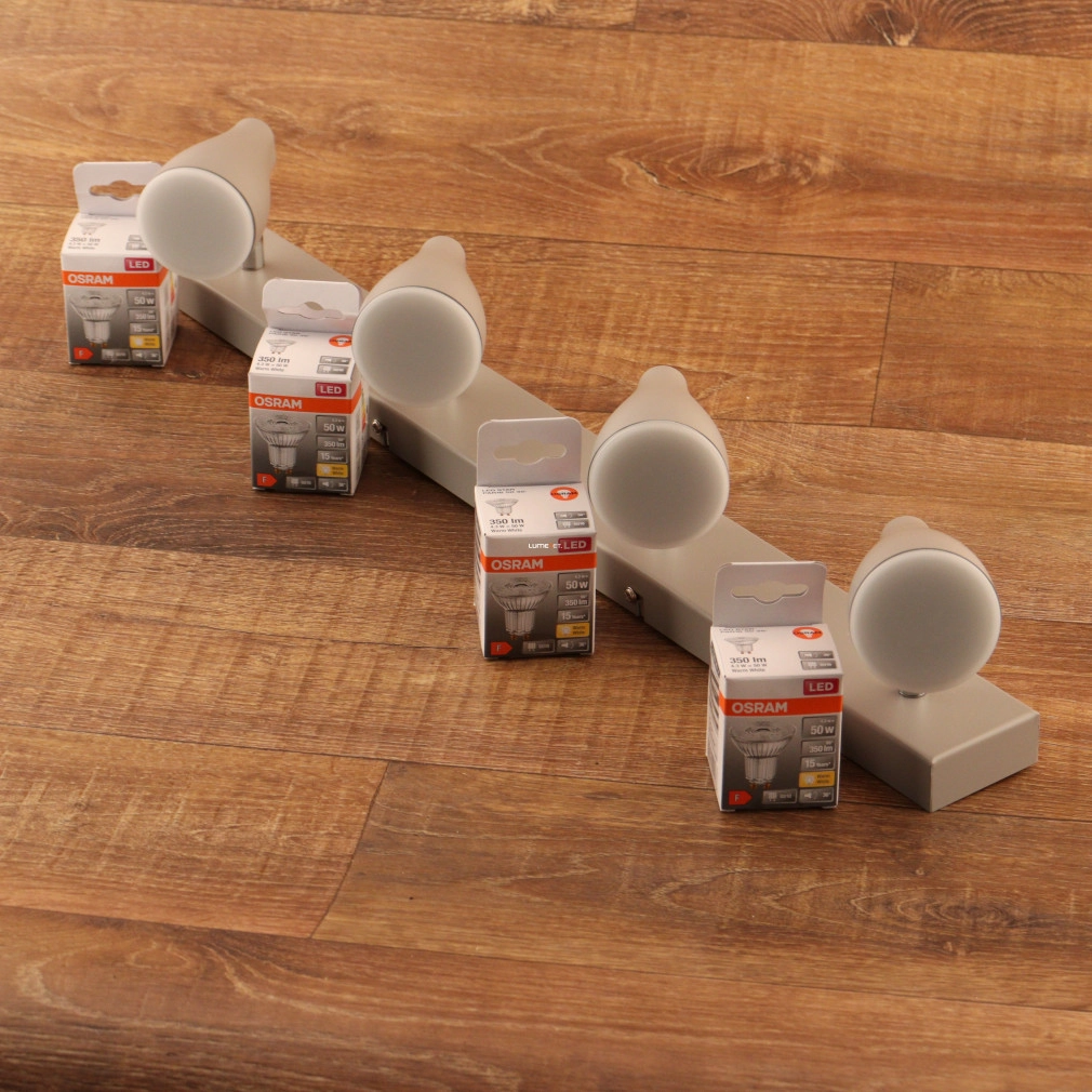 A Ledvance spot lámpa fényforrással, négy karos kivitelben, szürke (Pearl) színben, mennyezetre szerelhető megoldás, amely GU10 foglalattal rendelkezik és négy darab melegfehér fényű LED modult tartalmaz. A lámpatest névleges teljesítménye 17,2 watt, fényárama 840 lumen, színhőmérséklete 2700 Kelvin, ami kellemes, meleg hangulatot teremt a helyiségben. A termék fényhasznosítása 48 lm/W, sugárzási szöge 36°, színvisszaadási indexe (CRI) 80, így természetes megvilágítást biztosít. IP20 védettségi szinttel, valamint IK06 ütésállósággal rendelkezik, anyaga műanyag és fém kombinációja. A lámpa átlagos élettartama 30 000 óra, nem szabályozható, névleges feszültsége 220-240 V. Méretei: hosszúság 614 mm, szélesség 60 mm, magasság 131 mm. A csomagolás méretei: 8x13x65 cm, a termék tömege 0,98 kg. A Ledvance által gyártott mennyezetre szerelhető spot lámpa a fényforrást is tartalmazza.
