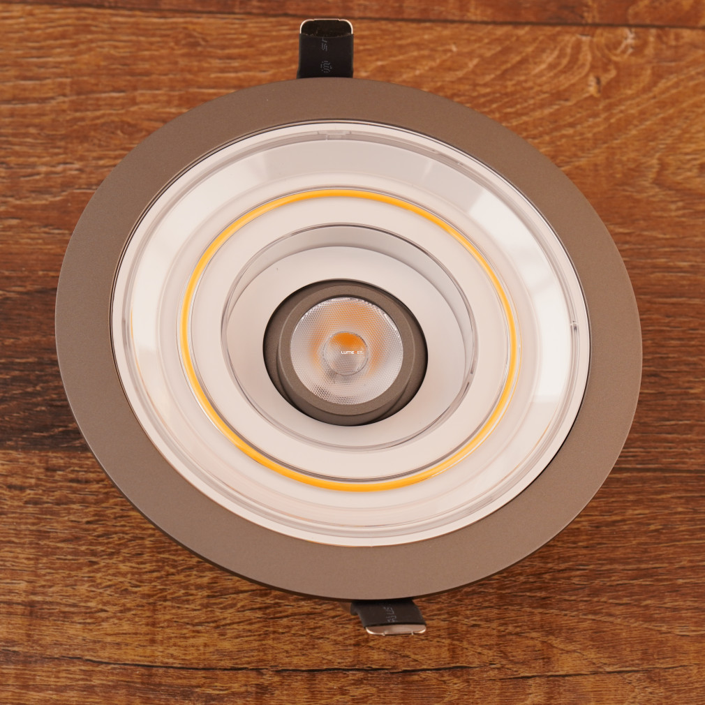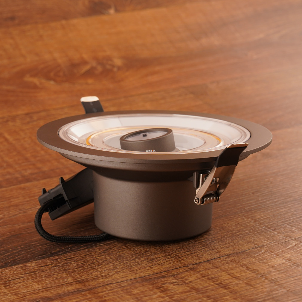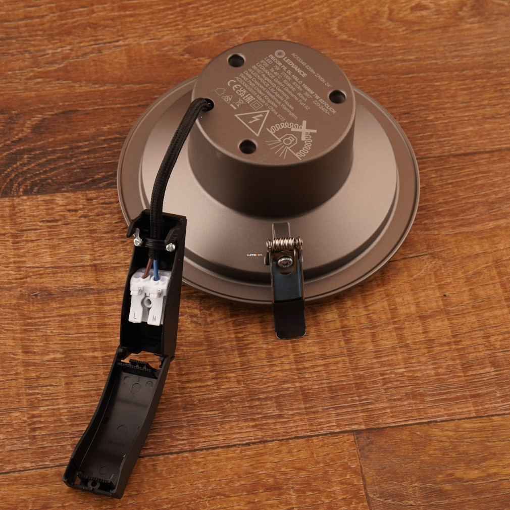 A Ledvance süllyesztett LED mélysugárzó 7 W teljesítménnyel és 610 lumen fényárammal biztosítja a melegfehér, 2700 K színhőmérsékletű világítást. A lámpatest LED modullal szerelt, amelynek színvisszaadási indexe 80, fényhasznosítása pedig 90 lm/W. A 120°-os sugárzási szög egyenletes fényeloszlást tesz lehetővé, míg a szabályozható fényerő lehetőséget ad a fényintenzitás igény szerinti beállítására. Az alumínium ház tartósságot és hatékony hőelvezetést biztosít. A lámpatest beépítési mélysége 180 mm, kivágási mérete 145 mm, átmérője 166 mm, magassága 68 mm. Az IP20 védettség beltéri használatra teszi alkalmassá. A termék átlagos élettartama 25 000 óra, névleges feszültsége 220-240 V. A csomagolás méretei: 20x20x11 cm, tömege 0,5 kg.