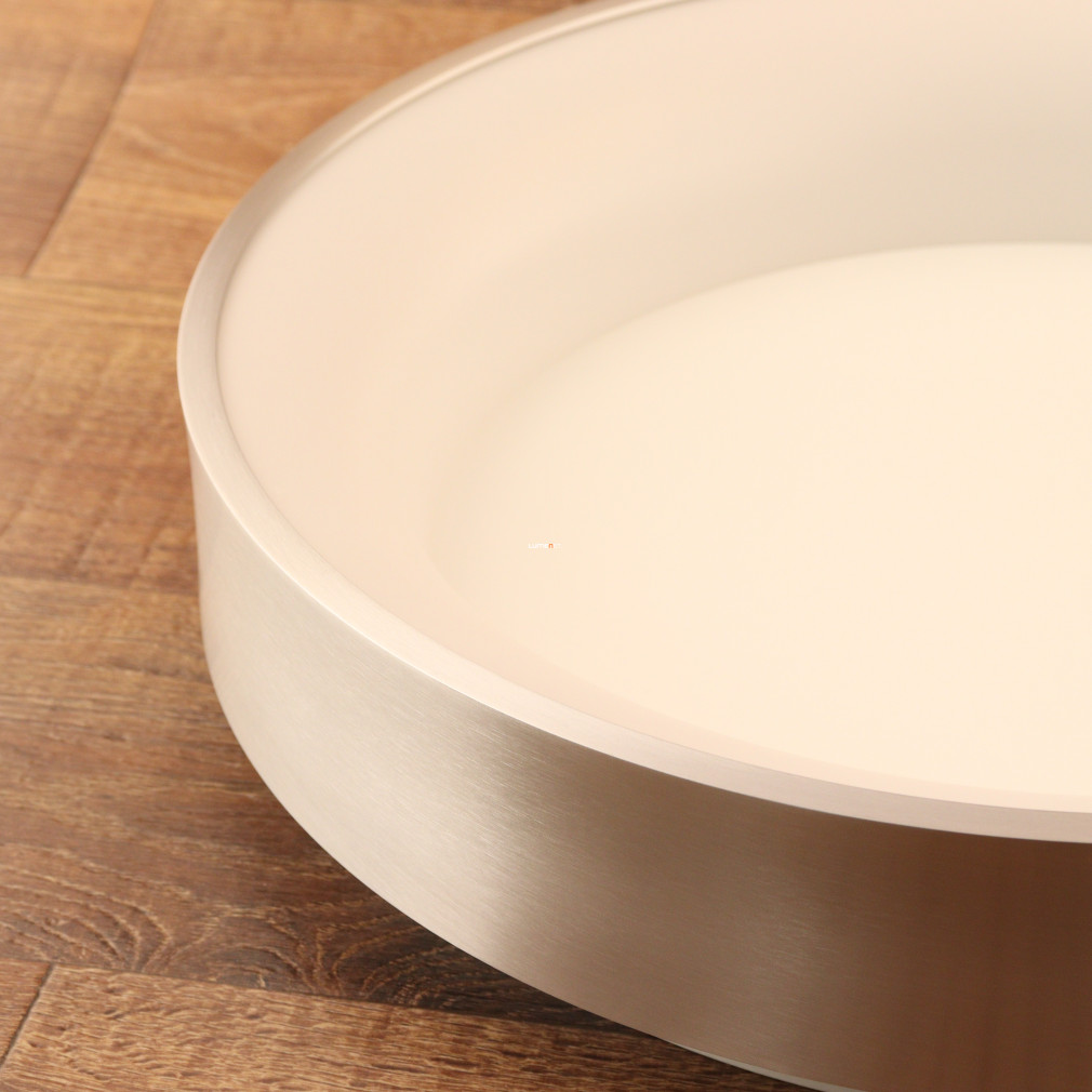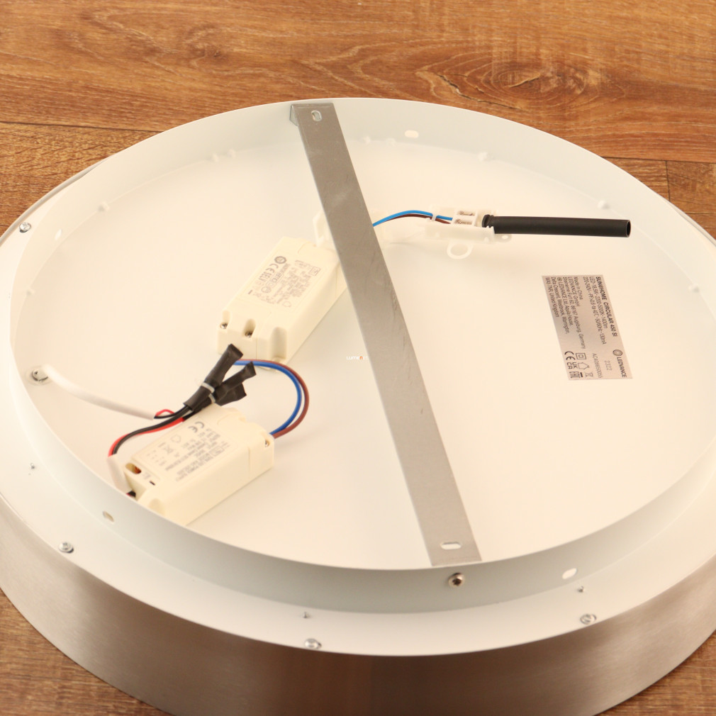 A Ledvance Sun@Home okos mennyezeti LED lámpa ezüst színű, modern kialakítású világítótest, amely 18,5 W teljesítményű LED modullal és 500 lumen fényárammal működik. A lámpa színhőmérséklete 2200 és 5000 Kelvin között változtatható, így a fény színe az igényekhez igazítható. A 95-ös színvisszaadási index kiváló színmegjelenítést biztosít. A termék Wi-Fi kapcsolaton keresztül, applikációval vagy opcionális távirányítóval szabályozható, valamint kompatibilis a Google Assistant és Amazon Alexa rendszerekkel. A 140 fokos sugárzási szög széles fényeloszlást tesz lehetővé. Az alumínium ház IP20 védettséggel rendelkezik, így beltéri használatra alkalmas. A lámpa átmérője 450 mm, magassága 97 mm, átlagos élettartama 30 000 óra.