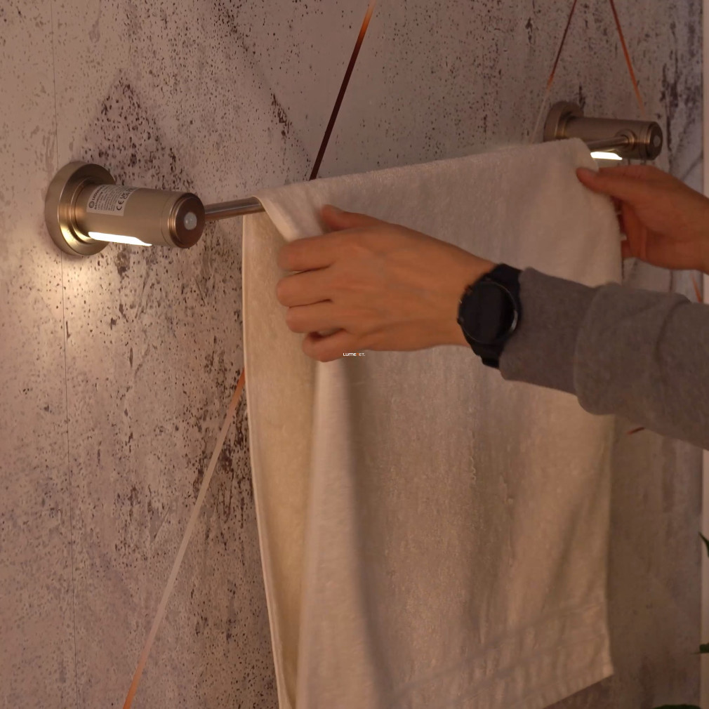 Ledvance törölköző tartó fürdőszobába LED lámpával, fény és mozgásérzékeléssel, elemmel