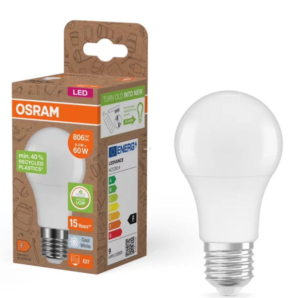 Osram újrahasznosított E27 LED, 8,5 W, 806 lm, hidegfehér fényű (Classic-A)