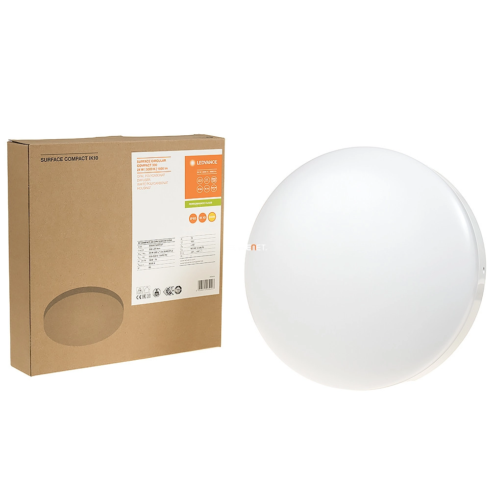 Az OSRAM világítástechnikai gyártóból 2016. Júniusában kivált LEDVANCE új, professzionális használatra szánt, személyre szabott LED lámpatest-portfóliót vezetett be. Az új terméksorozat modelljei kiváló ár-érték aránnyal rendelkeznek, egyszerűen installálhatóak, letisztult megjelenésűek, mindemellett különösen tartósak. Az új Surface-C LED sorozatba rendkívül hatékony és hosszú élettartamú LED-ekkel szerelt, fényminősége kiemelkedő és jól tervezett – széles, 120 fokos - fényeloszlása révén egyenletes megvilágítást biztosít. A 30 centiméter átmérőjű, por és pára ellen védett és ütésálló IK10-es LEDVANCE Surface-C LED 24W/3000K IP65 LED lámpatest 1800 Lumen fényáramával alkalmas egy 2x26 Wattos fénycsöves lámpatest kiváltására. Színhőmérséklete 3000 Kelvin, azaz semleges fehér, mely javasolt lakások, irodák folyosóinak, közlekedőinek és egyéb kiszolgáló helységeinek megvilágítására. A LEDVANCE Surface-C LED 24W/3000K IP65 LED lámpatest várható élettartama 50 000 óra, mely napi átlag 3 órás használat mellett 50 évet jelent. A LEDVANCE erre a termékre 5 év önkéntes jótállást vállal.
