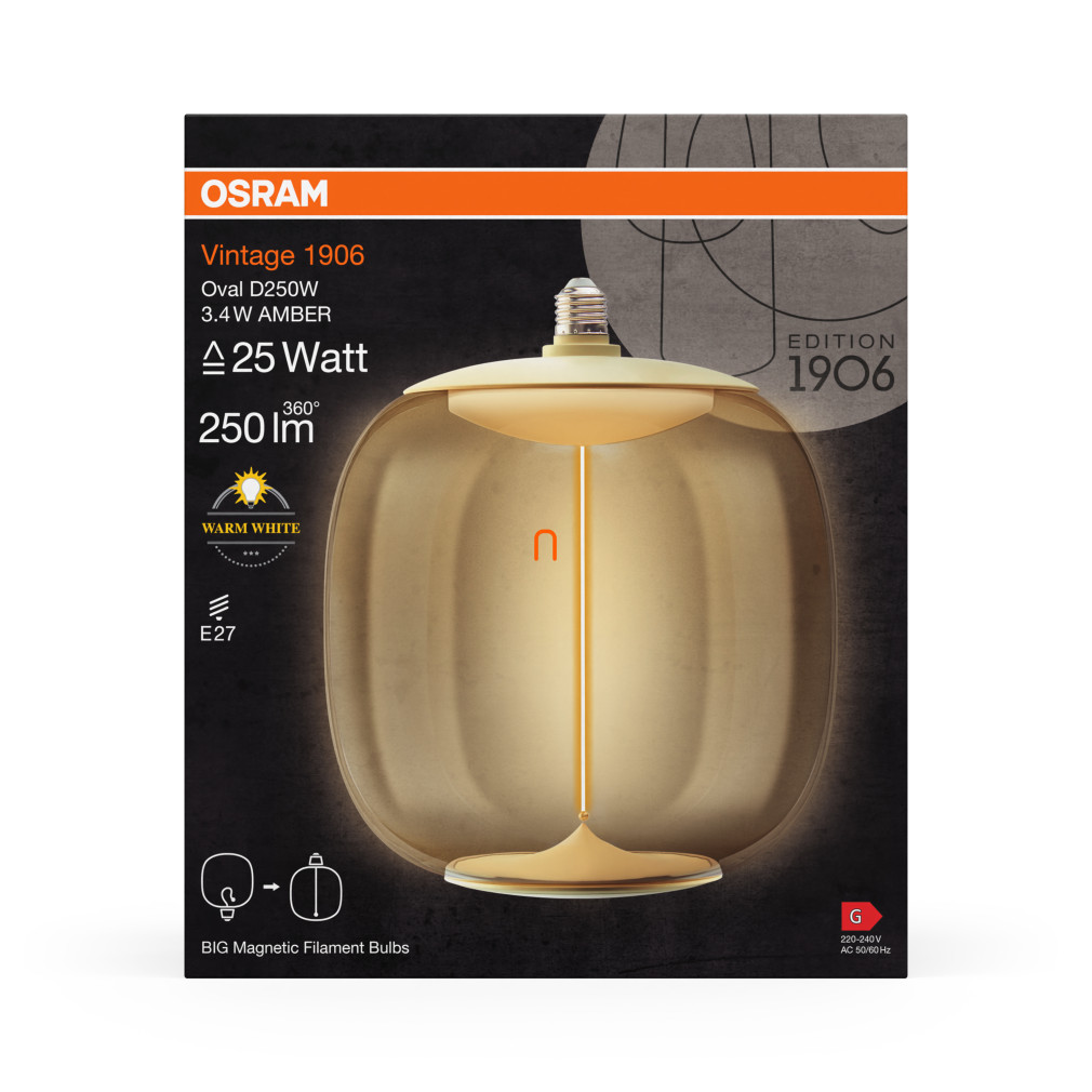 Osram Vintage 1906 Oval E27 LED filament fényforrás borostyán színben (Magnetic Style)
