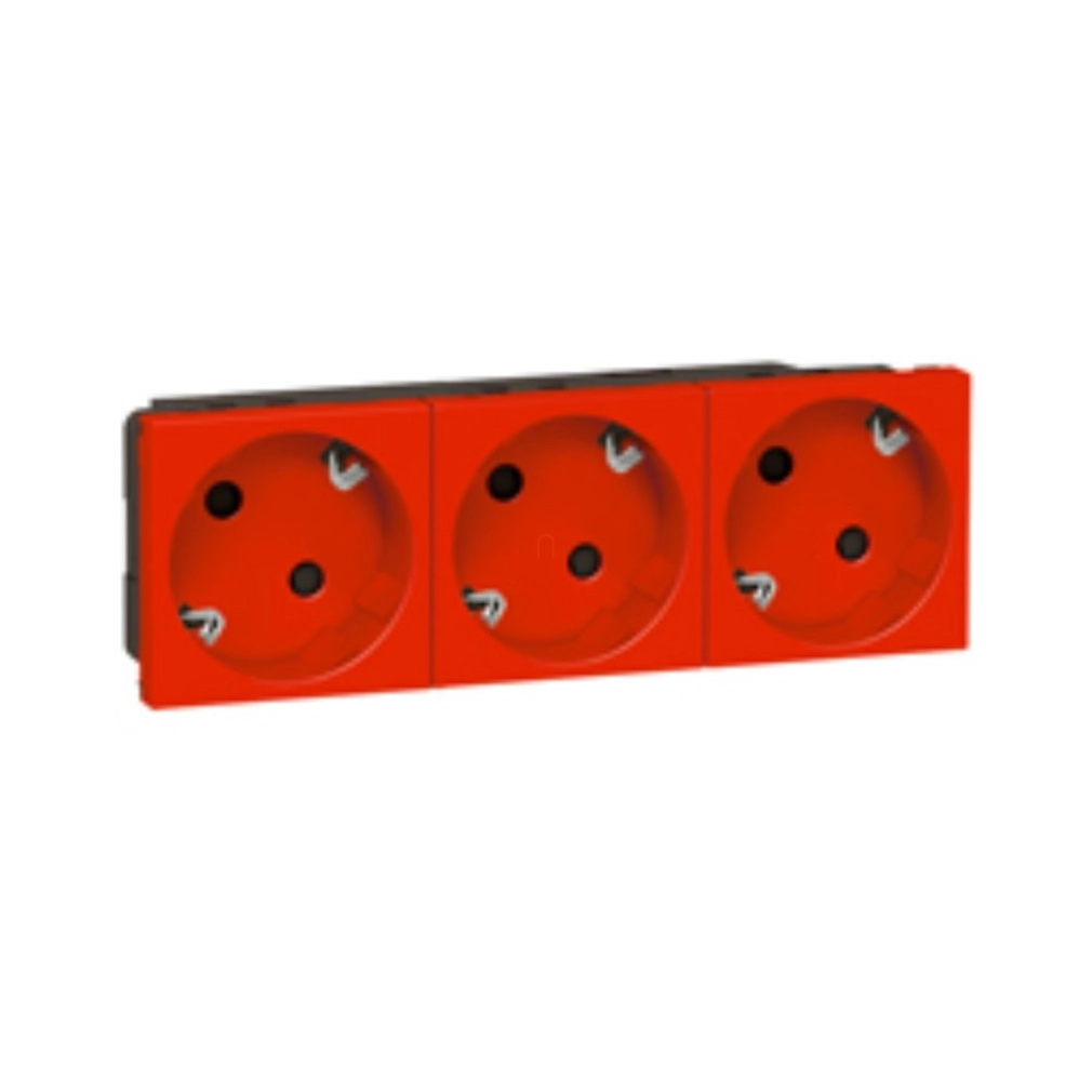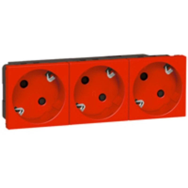 Legrand Program Mosaic 3x2P+F aljzat, sínezett, rugós, piros - 77273