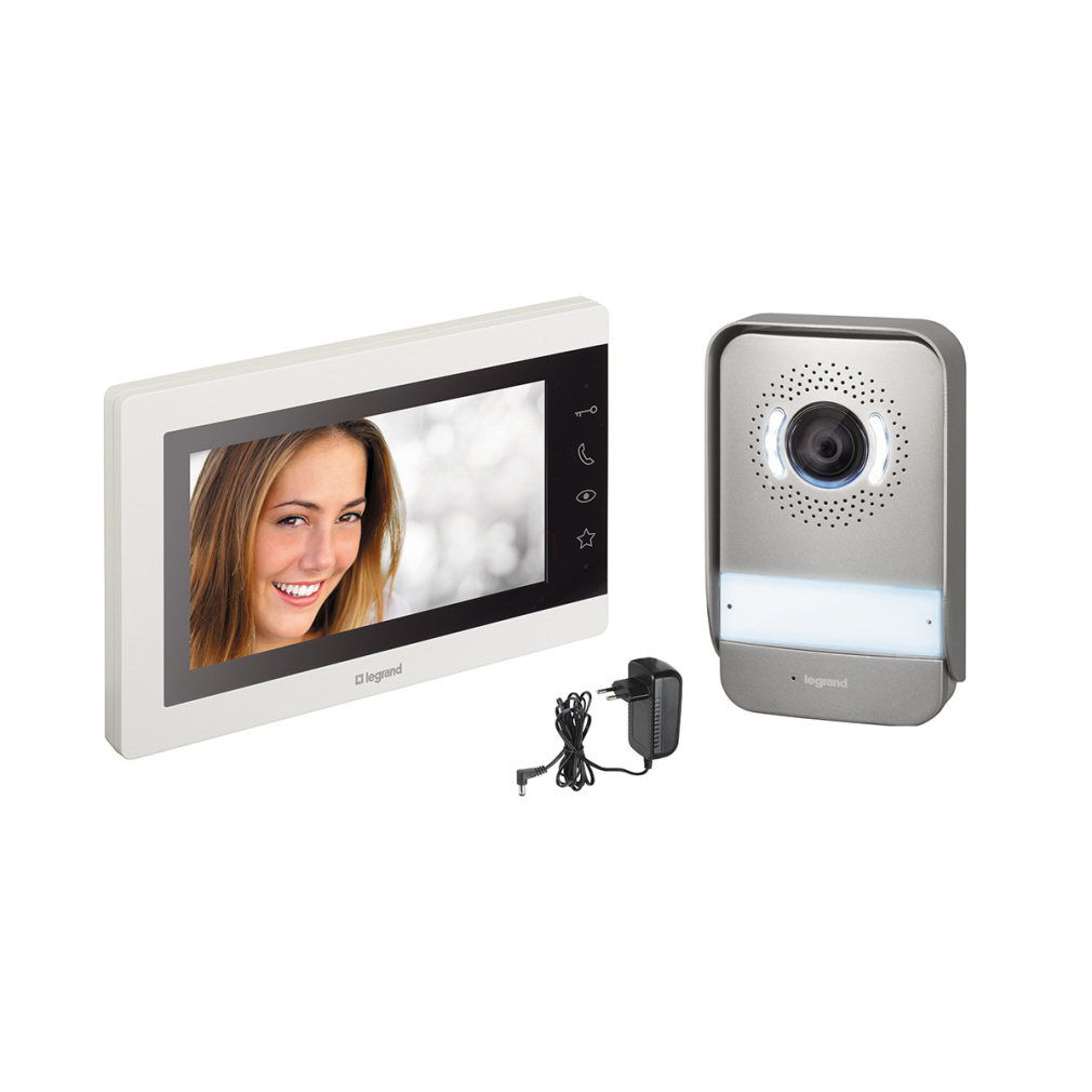 Legrand 2 vezetékes EasyKit Essential videó kaputelefon szett: színes videó (7''), bővíthető 1 lakásos, adapterrel, fehér - 367910