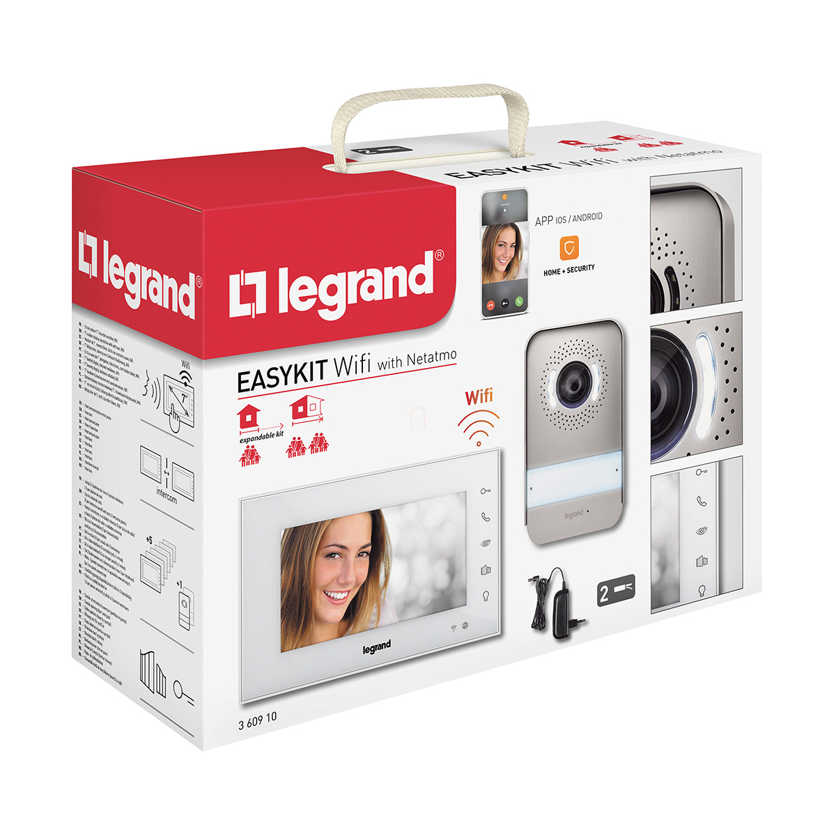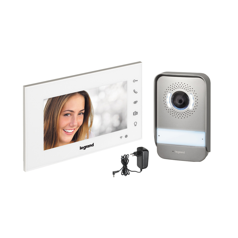 Legrand 2 vezetékes EasyKit Wi-Fi videó kaputelefon szett: egylakásos, bővíthető, színes videó (7''), adapterrel, fehér - 360910