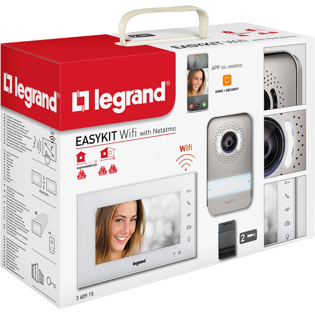 Legrand 2 vezetékes EasyKit Wi-Fi videó kaputelefon szett: színes videó (7''), bővíthető 1 lakásos, DIN moduláris táppal, fehér - 360915