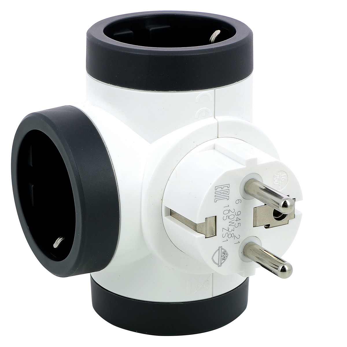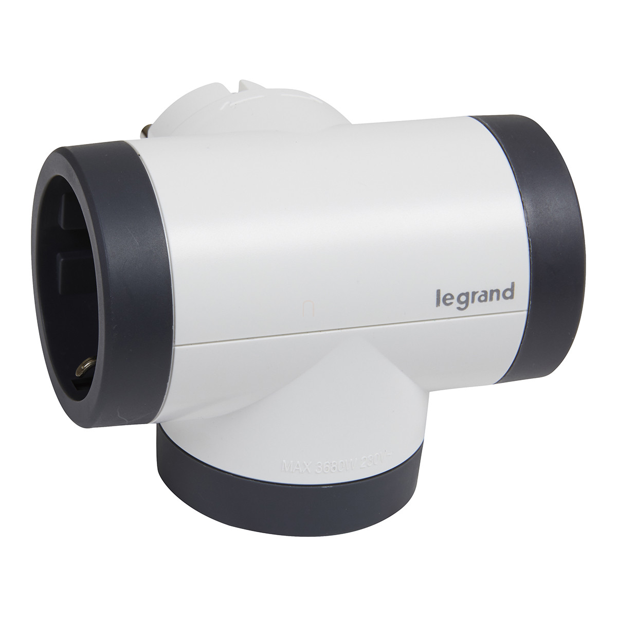 Legrand 3-as elágazású 2P+F elosztódugó forgatható, 16A, fehér-sötét szürke - 694521