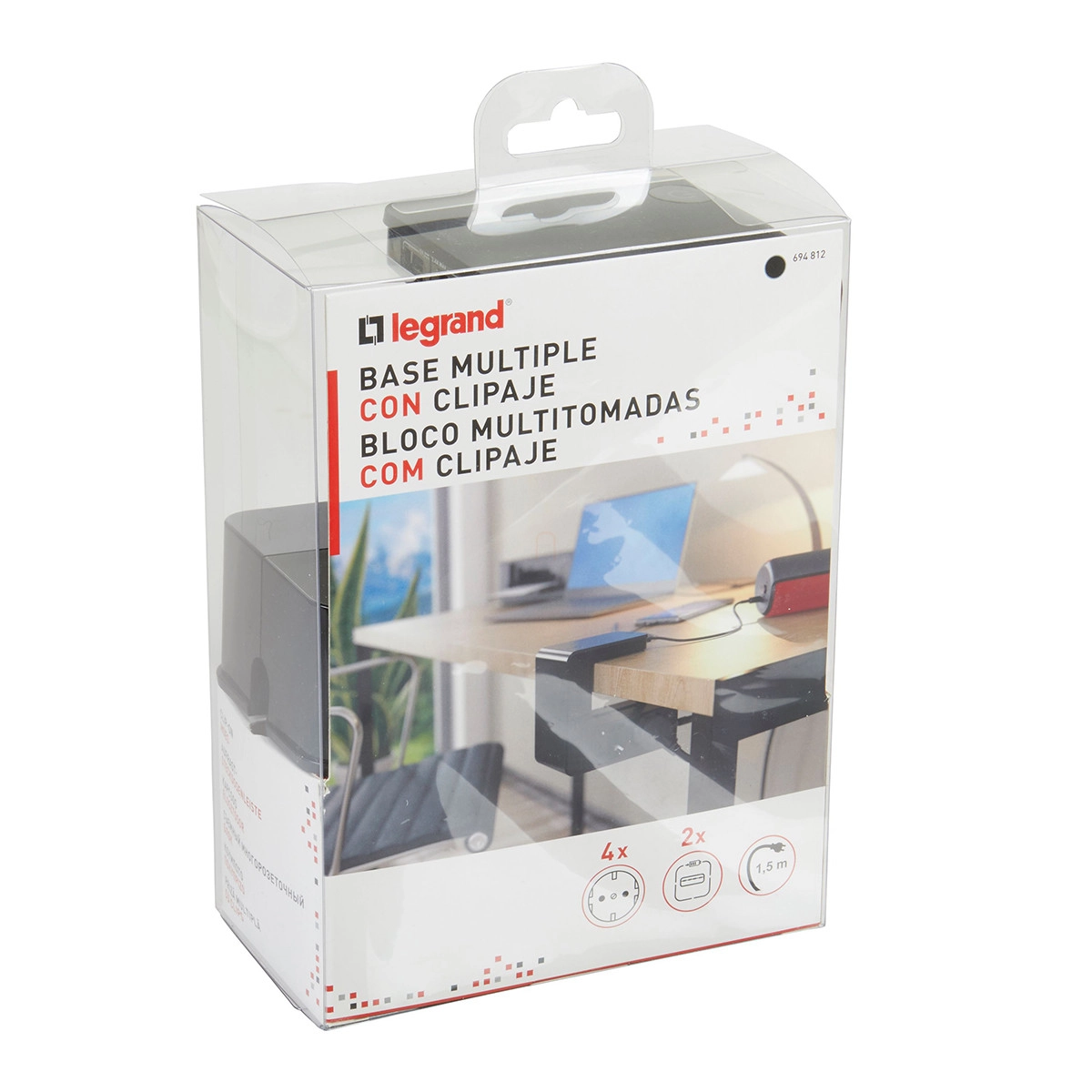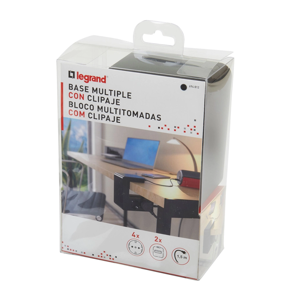 Hálózati elosztó 4db aljzat 1,5fm vezetékkel asztalra rögzíthető +2xUSB-A fekete 694812 Legrand