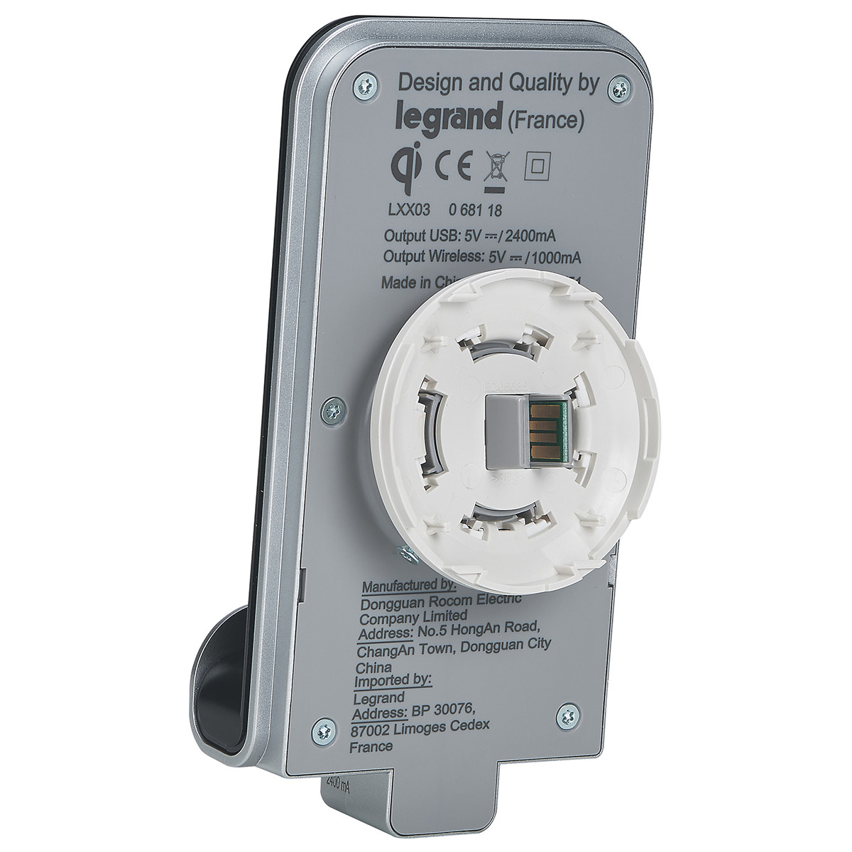 Legrand Céliane indukciós töltő + USB töltőaljzat, dupla USB töltőaljzattal használandó, indukciós töltőáram: 1 A - 68118