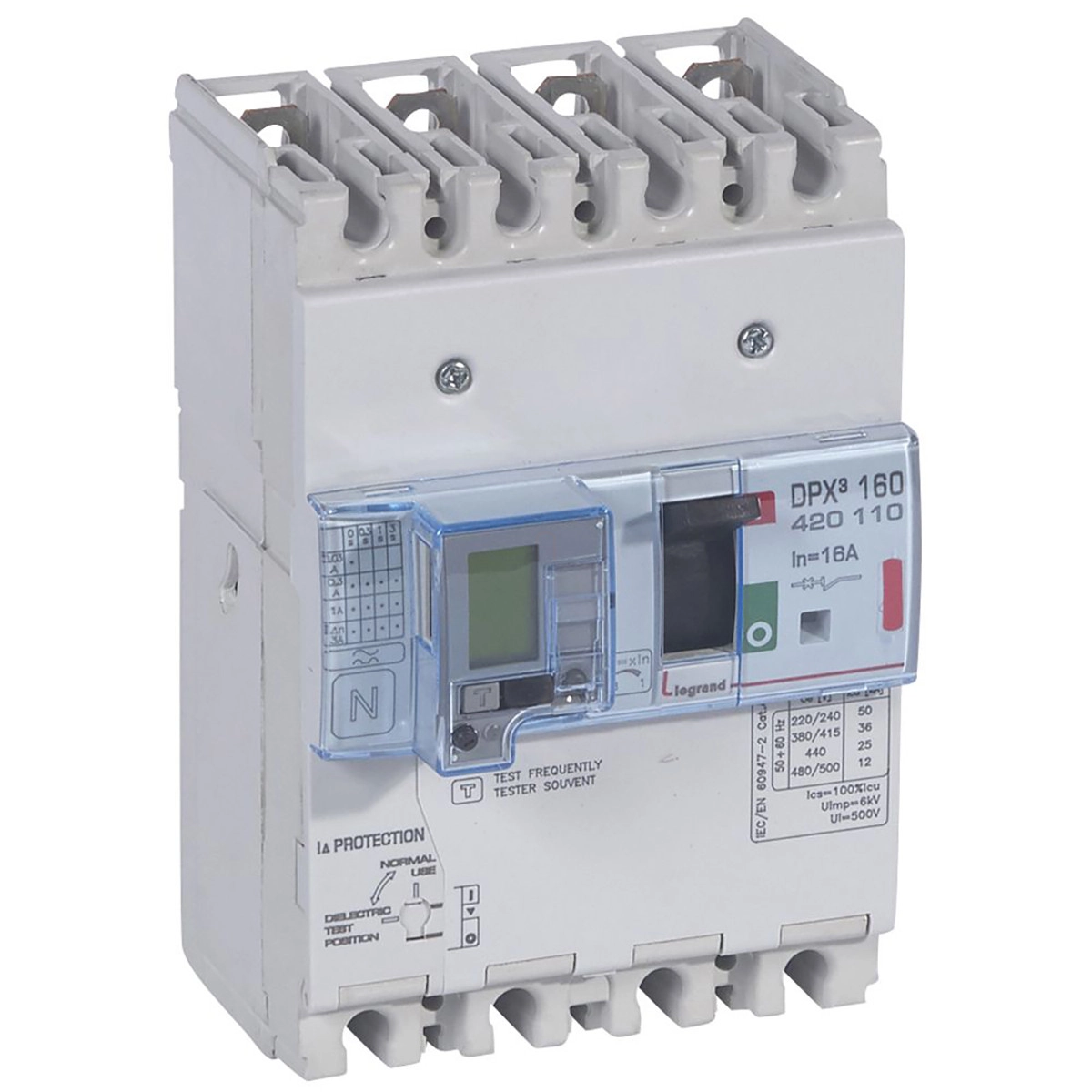 DPX3 160 16A 4P+áramvédő kapcsoló termikus mágneses 36kA kombinált áramvédő kapcsoló 420110 Legrand