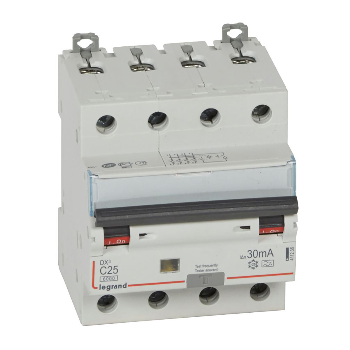 DX3 4P kombinált áram-védőkapcsoló C25 6000A / 10kA 30mA A típus 411236