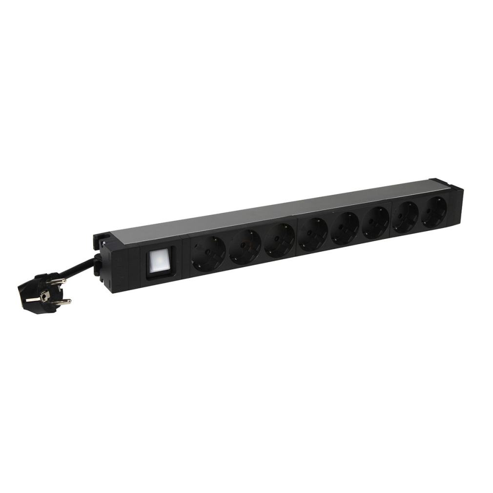 Leg. 646823 elosztósor 19col/1U állapotjezős kapcsolóval KIM:8xSCH-gyermekvédett, TÁP: háztartási -2P+F 16A, 3 méter