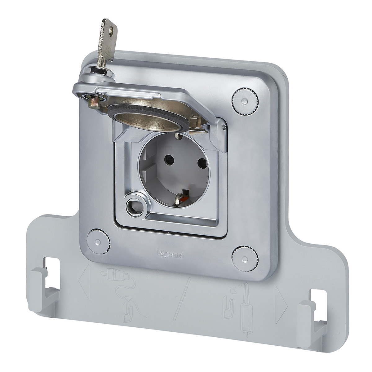 Green up Access 2P+F 16 A EV fém süllyesztett aljzat zárható csapófedéllel 077857 Legrand