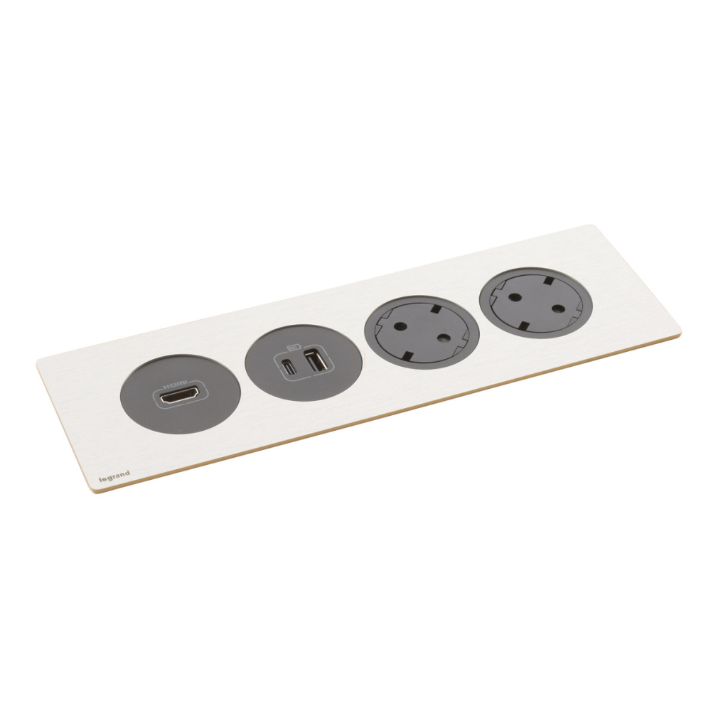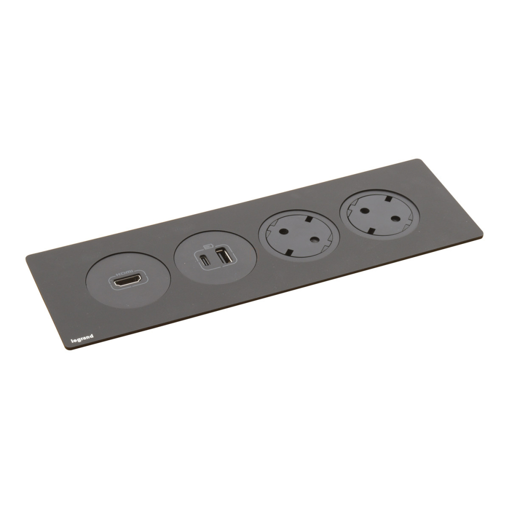 Legrand Incara Disq In bútorba süllyeszthető 2x2P+F + 1xUSB A+C + 1xHDMI aljzat, 2m kábellel, fekete - 654751