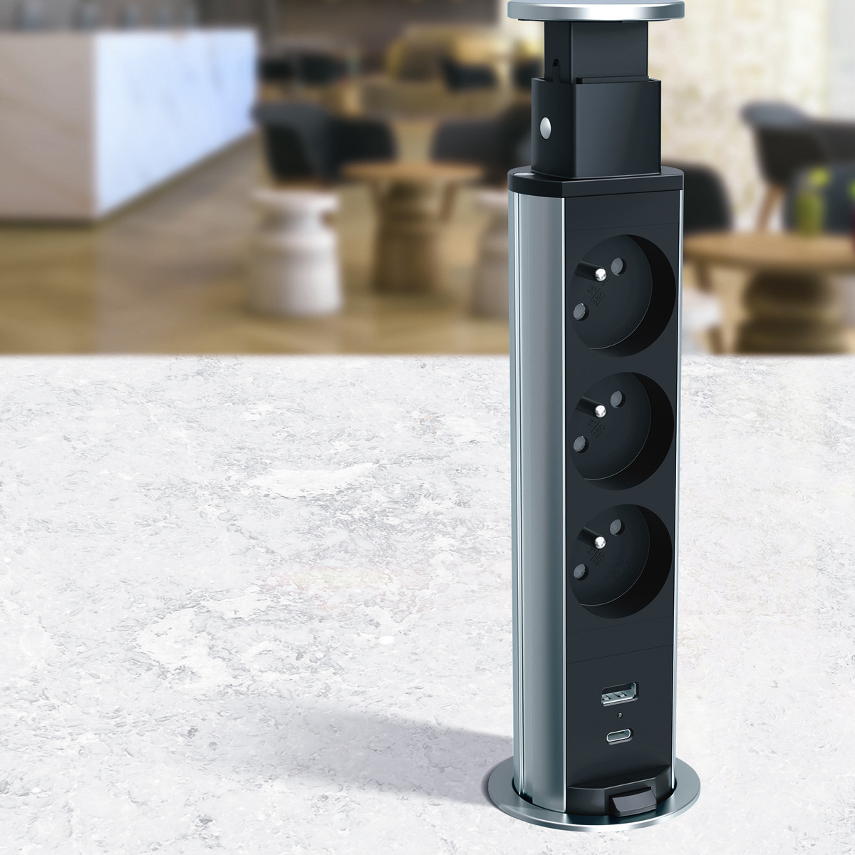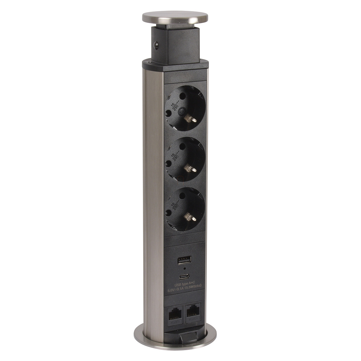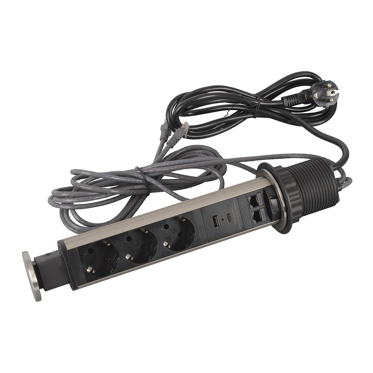 Legrand 654975 3x2P+F + 2xRJ45 Cat.6 FTP + USB A+C aljzat, 2m kábellel bútorba süllyeszthető Incara Tower 60
