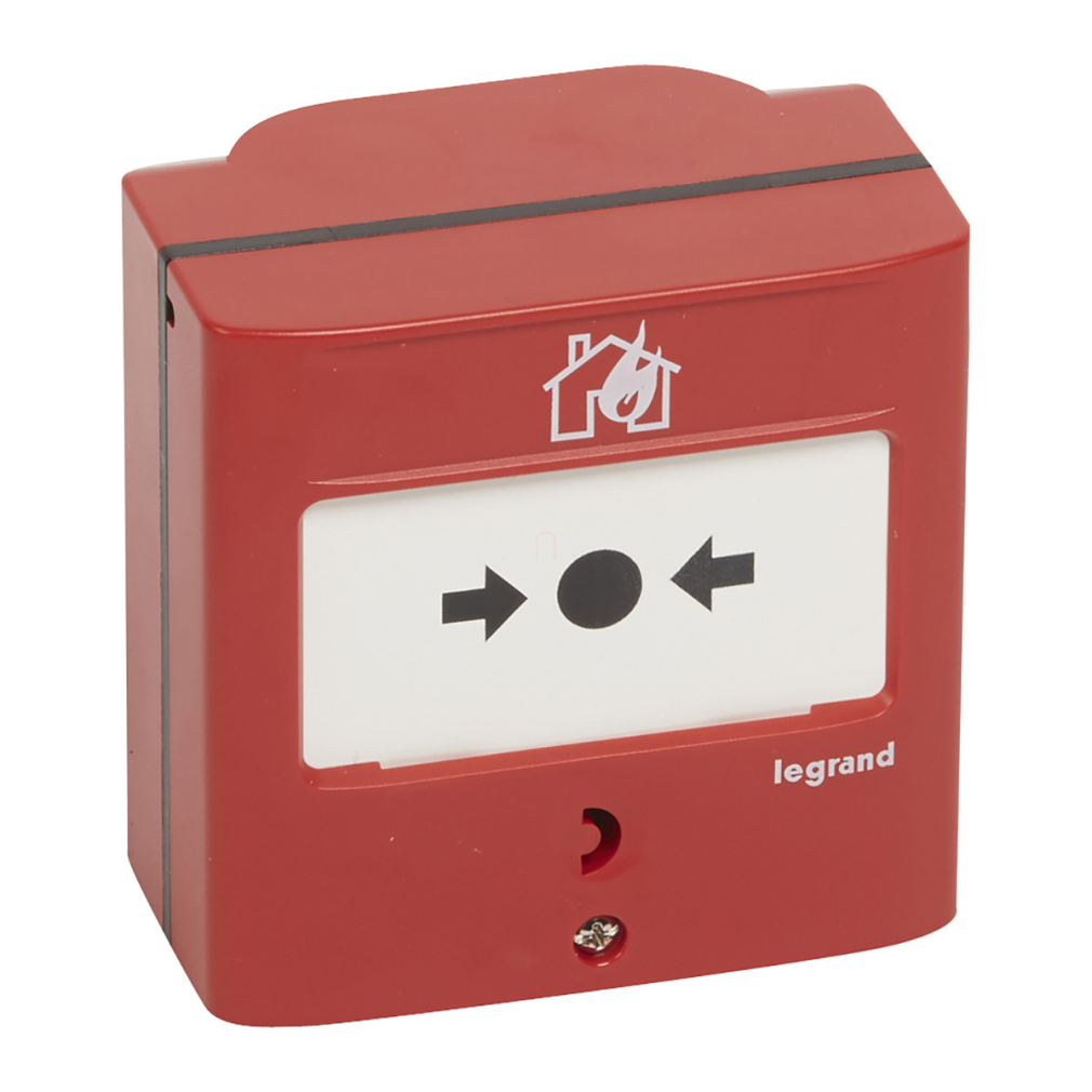 Legrand kézi jelzésadó tűzérzékelő és tűzjelző rendszerekhez, egyműveletes, piros RAL 3000, 2 váltóérintkezővel-5A-24V=, IP30-IK07 - 138068