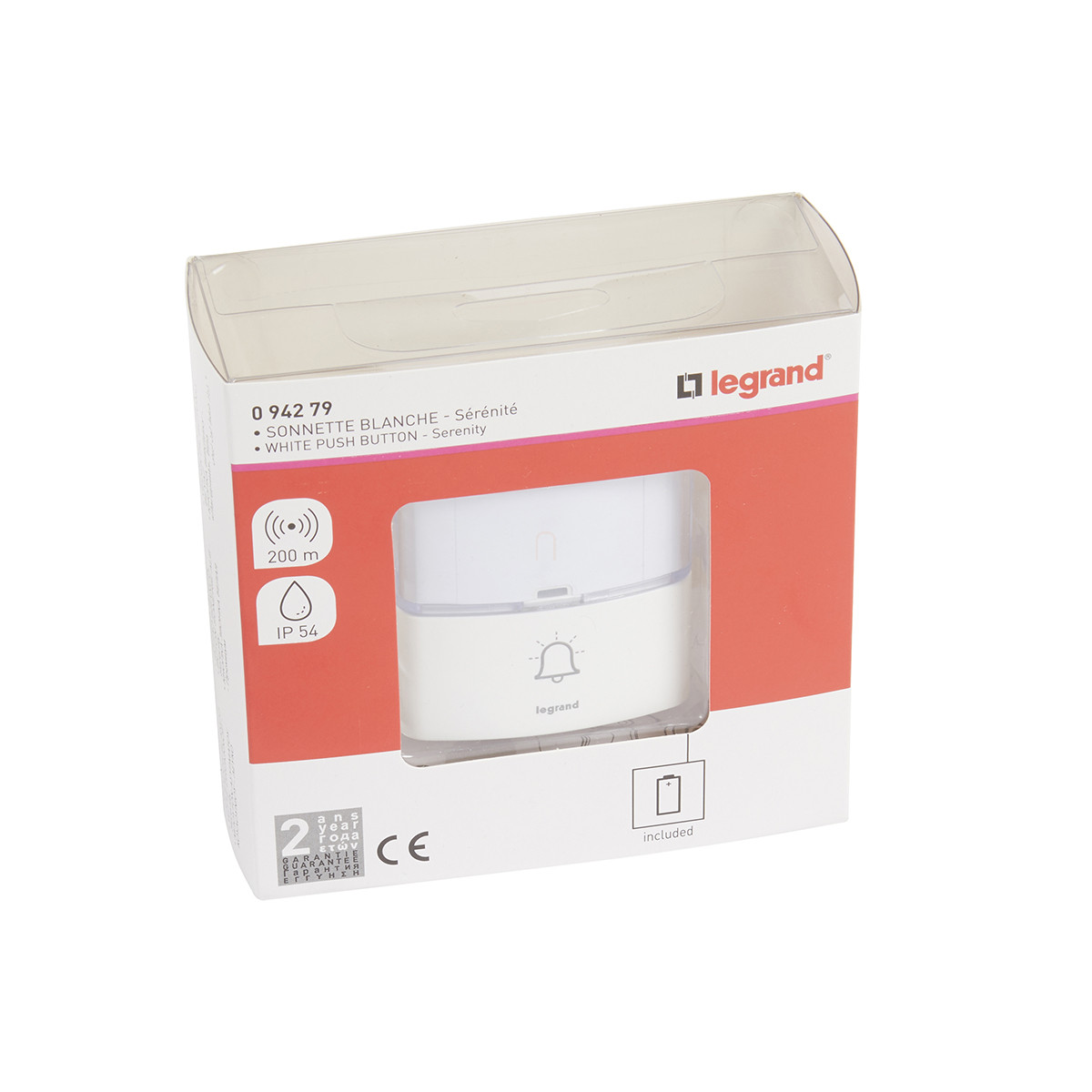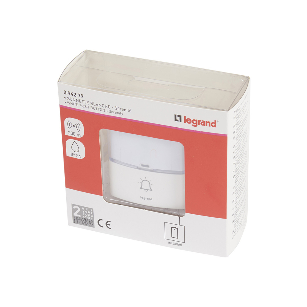 Legrand kiegészítő PRÉMIUM szögletes csengőnyomó gomb IP54-es, 100m-es hatótávolsággal, elemmel, fehér - 94279