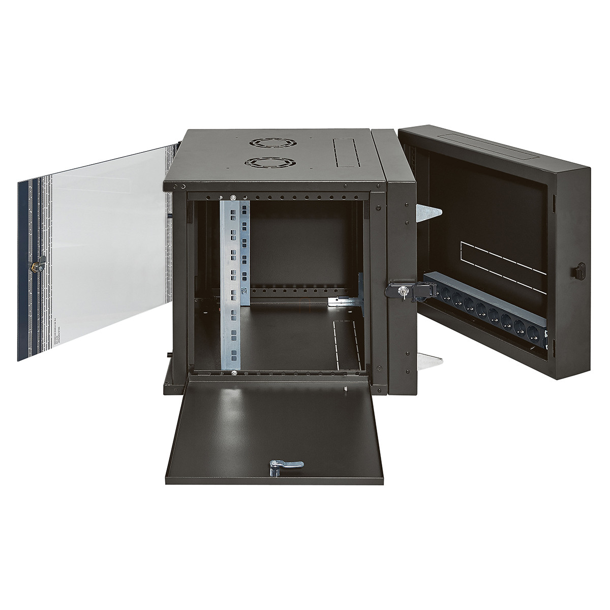 Leg.646225 fali rackszekrény 19'' 21U MAG:1022 SZÉL: 600 MÉLY: 610 antracit kétrészes üvegajtós készre szerelt MAX: 63 kg Linkeo