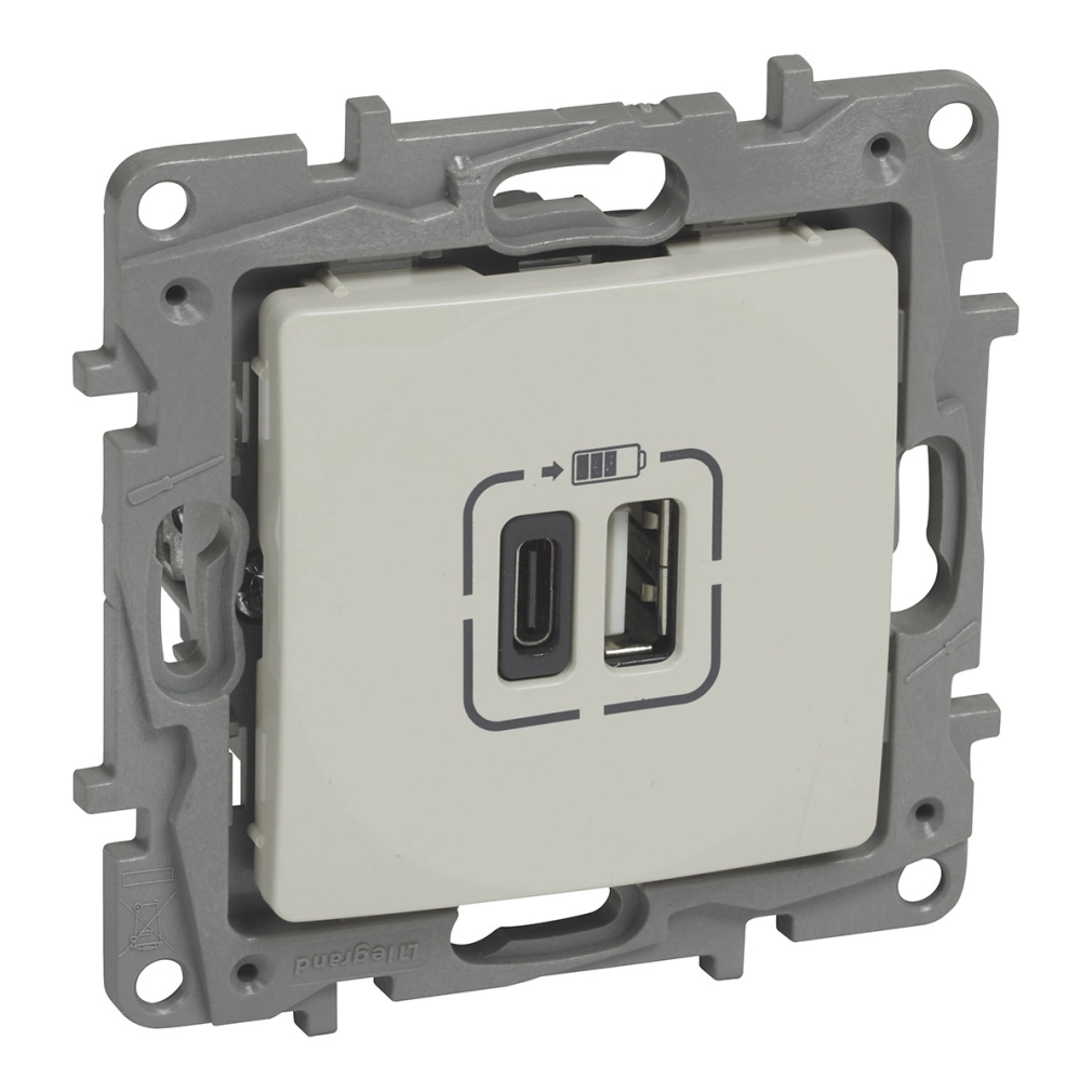 Legrand Niloé kettős USB-A+C töltőaljzat-3 A-15 W, bézs - 764697