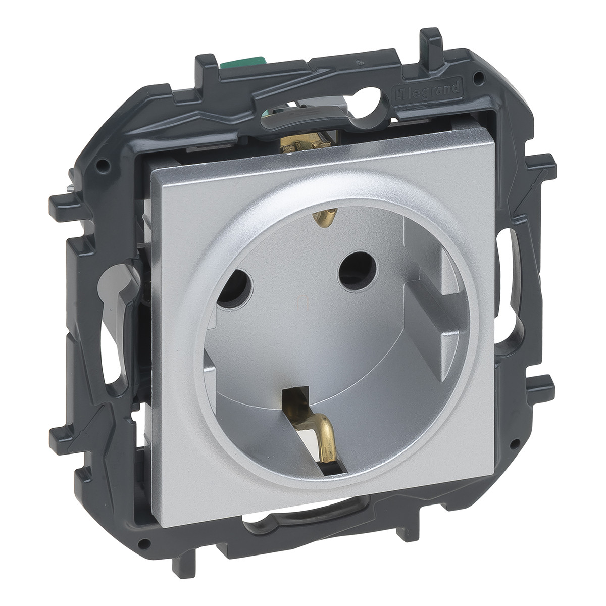 Legrand Niloé Step 2P+F csatlakozóaljzat (rugós), biztonsági zsaluval, alumínium - 863320B