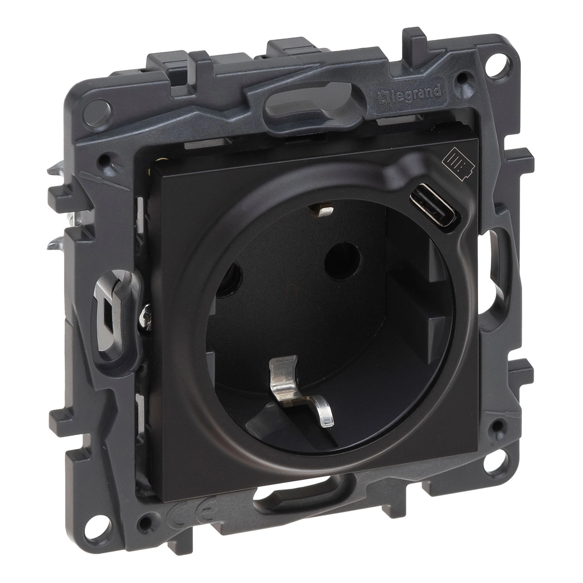 Legrand Niloé Step 2P+F kombinált csatlakozóaljzat + USB-C, (rugós), biztonsági zsaluval, fekete - 863526