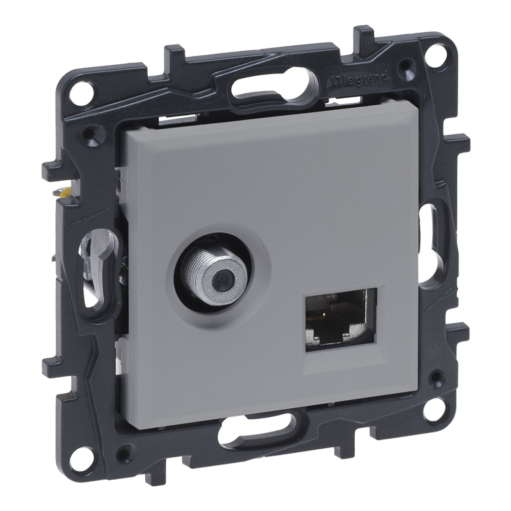 Legrand Niloé Step "F" típusú TV aljzat + RJ45 Cat. 6 UTP aljzat alumínium - 863377